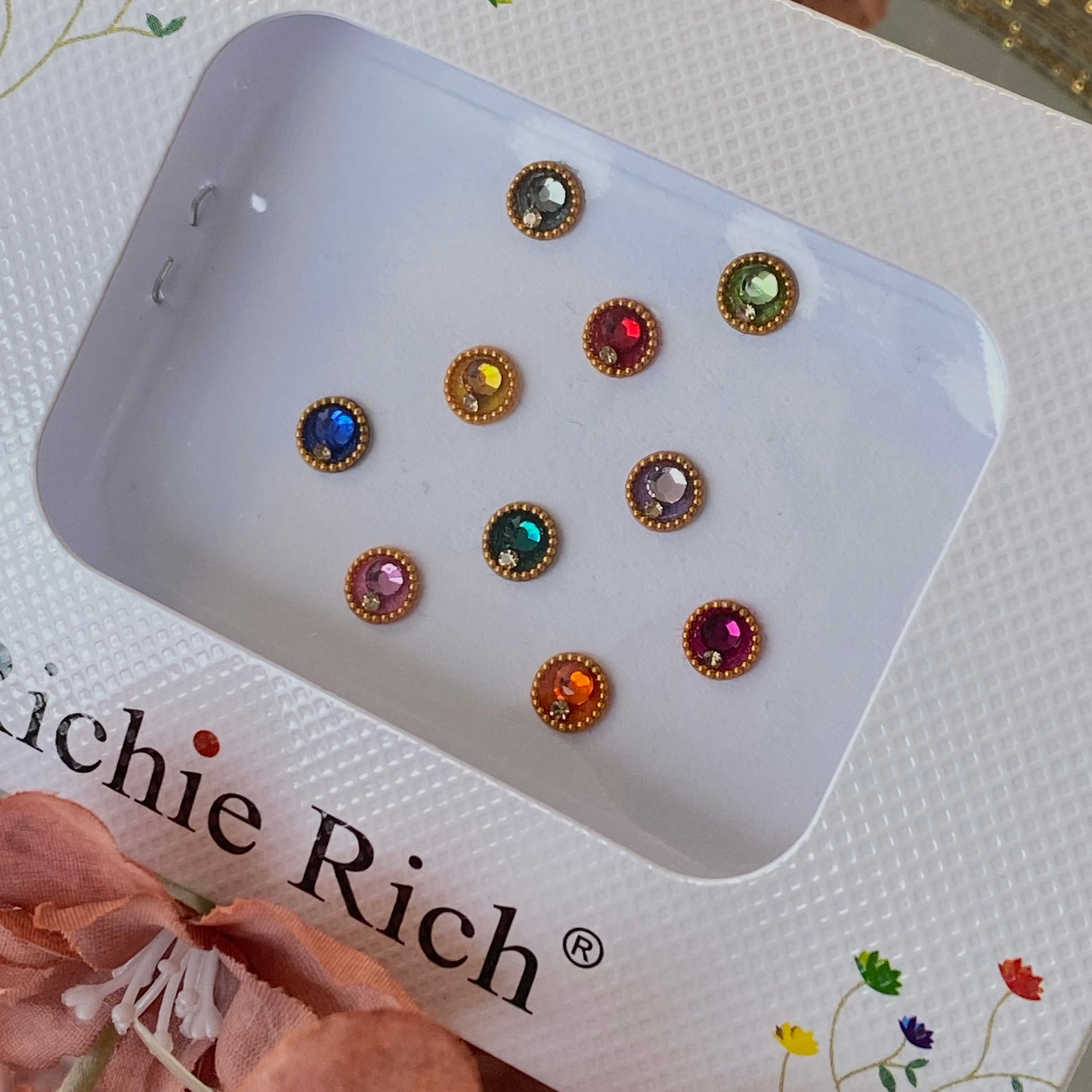 Multicolour Crystal Round Bindi Pack /Bindiya/ Chanlo/ Indian Accessory/ Forehead