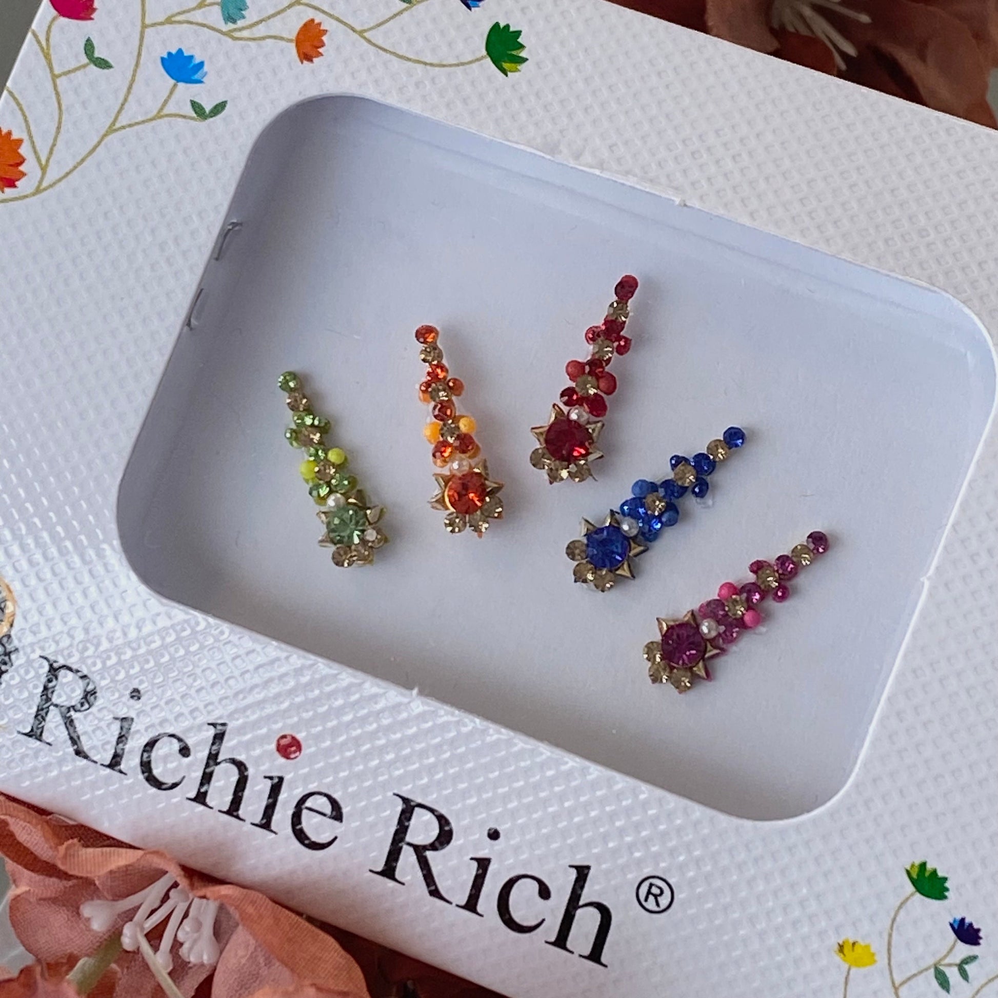 Multicolour Long Medium Crystal Round Bindi Pack /Bindiya/ Chanlo/ Indian Accessory/ Forehead