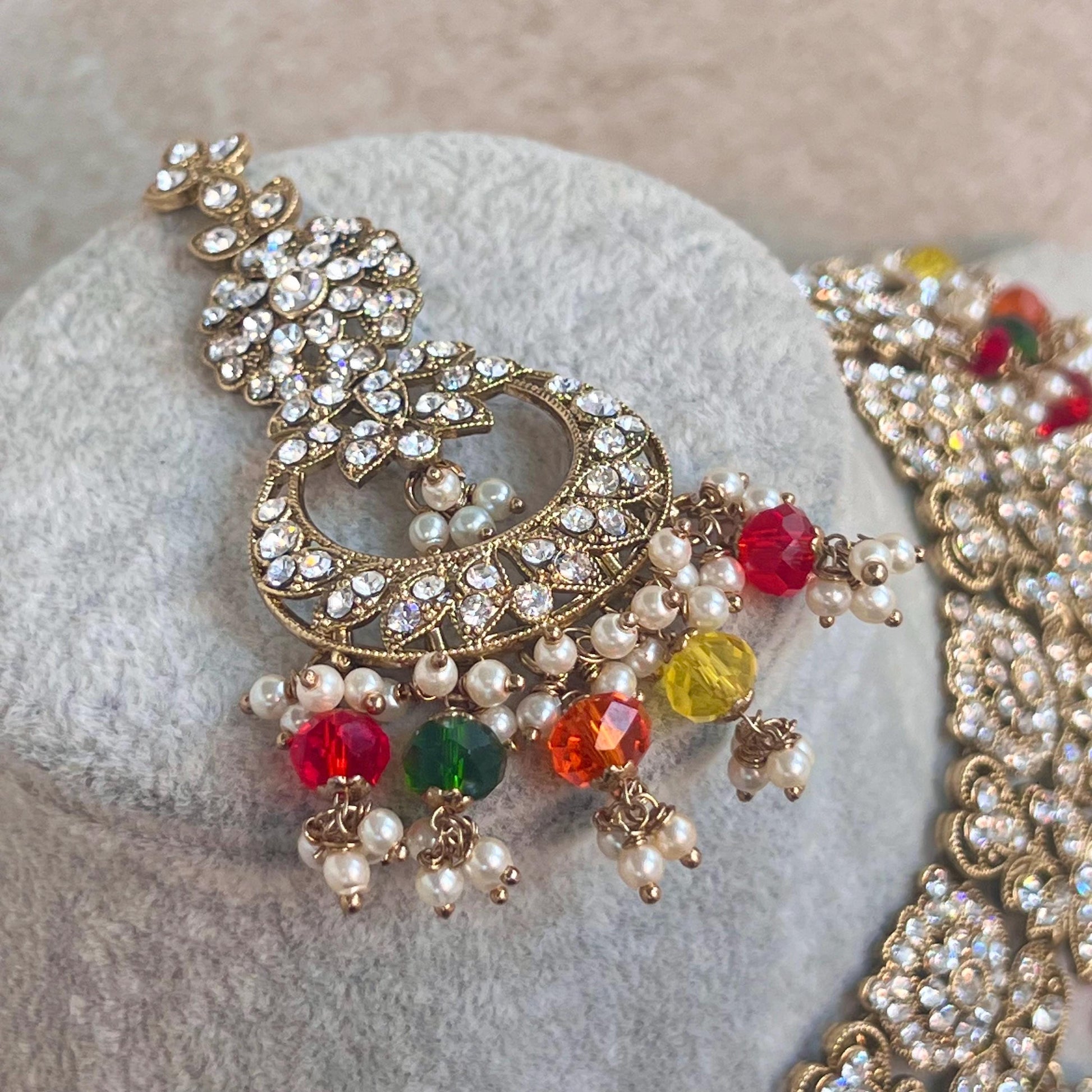 Multicolour Necklace Set - Multicolour Earring/ Tikka/ Tikli/ Indian/ Pakistani/Fashion Jewellery/Mendhi/ Green, Orange, Yellow and Red