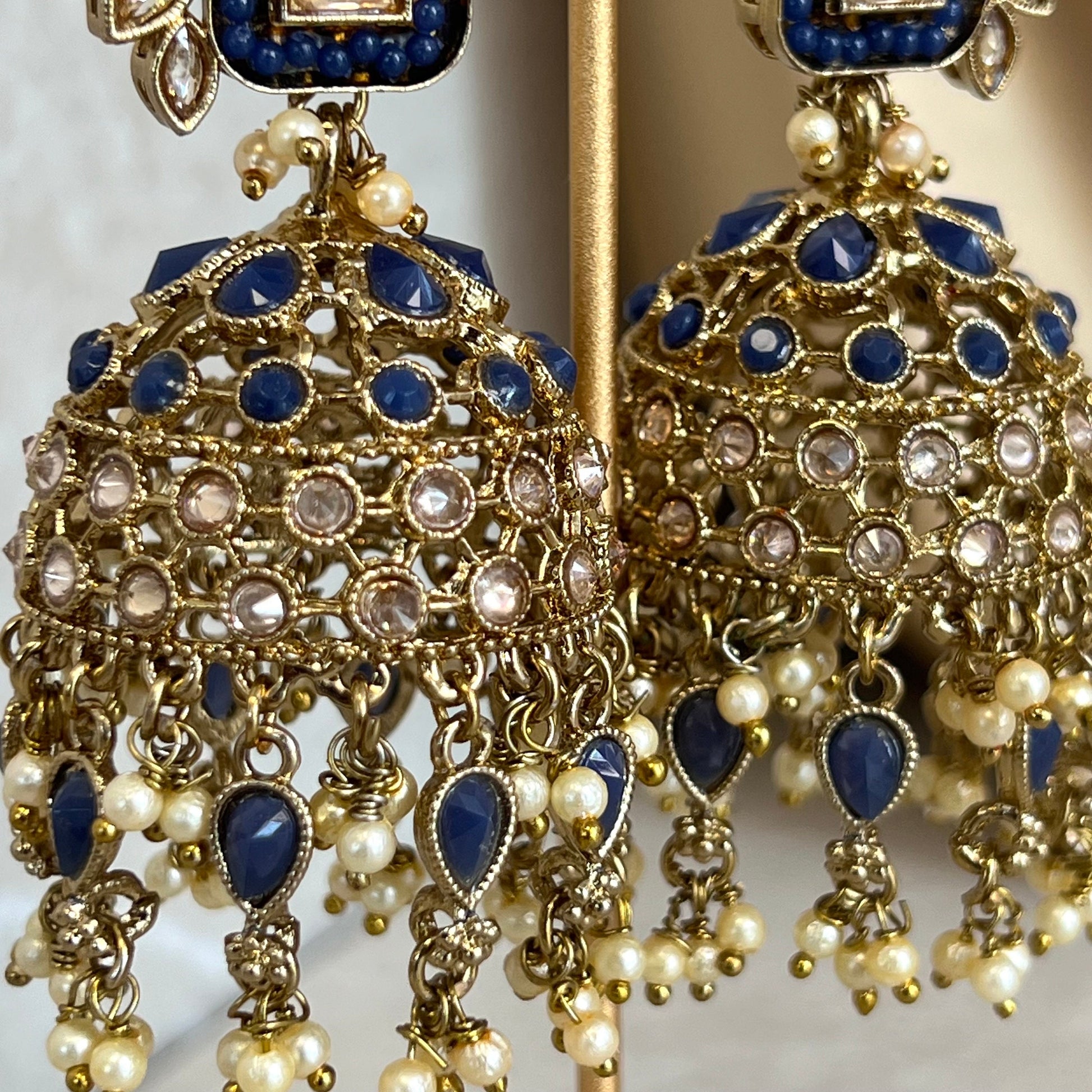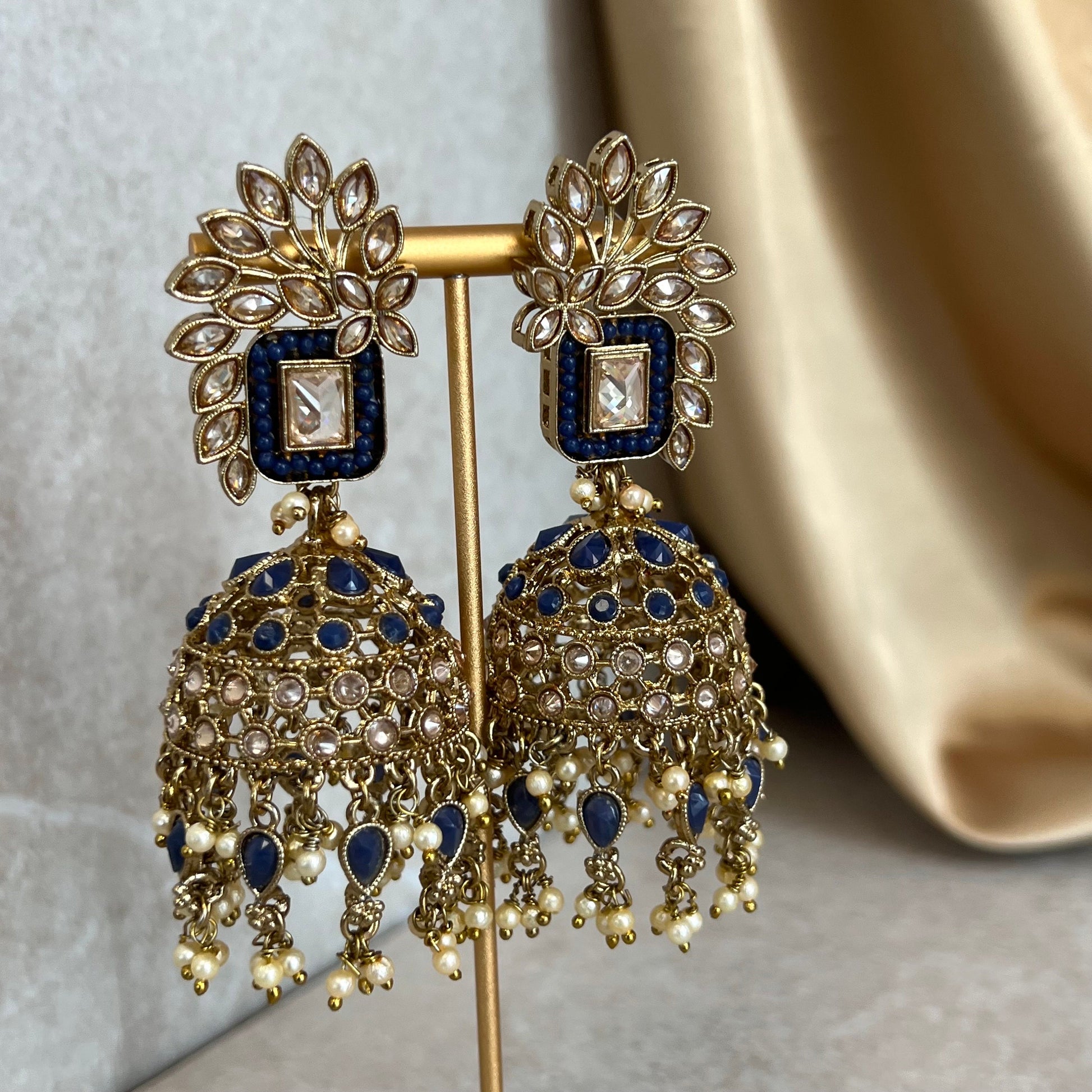 Navy Blue Large Vine Leaf Jhumka Earrings - Indian Style Earring/Pakistani Fashion/ Mendhi/Party/Haldi/ Diwali Gift/ Eid Gift