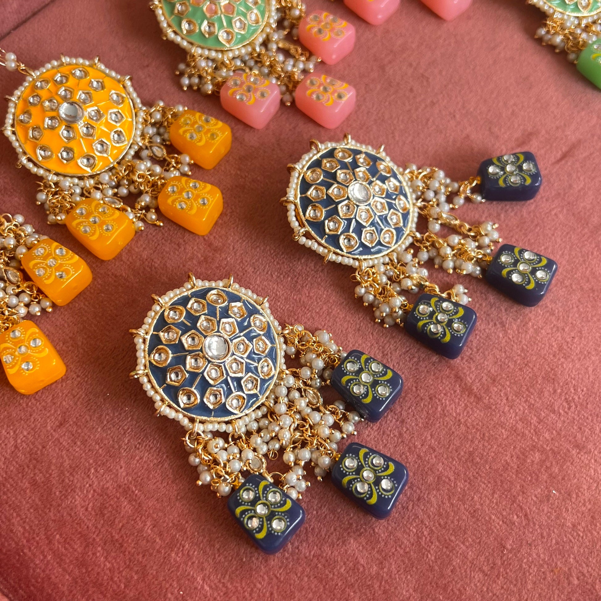 Navy- Dice Design Faux Kundan Earring Indian Style Earring/ Pakistani Fashion/Party Earring. Gift for women