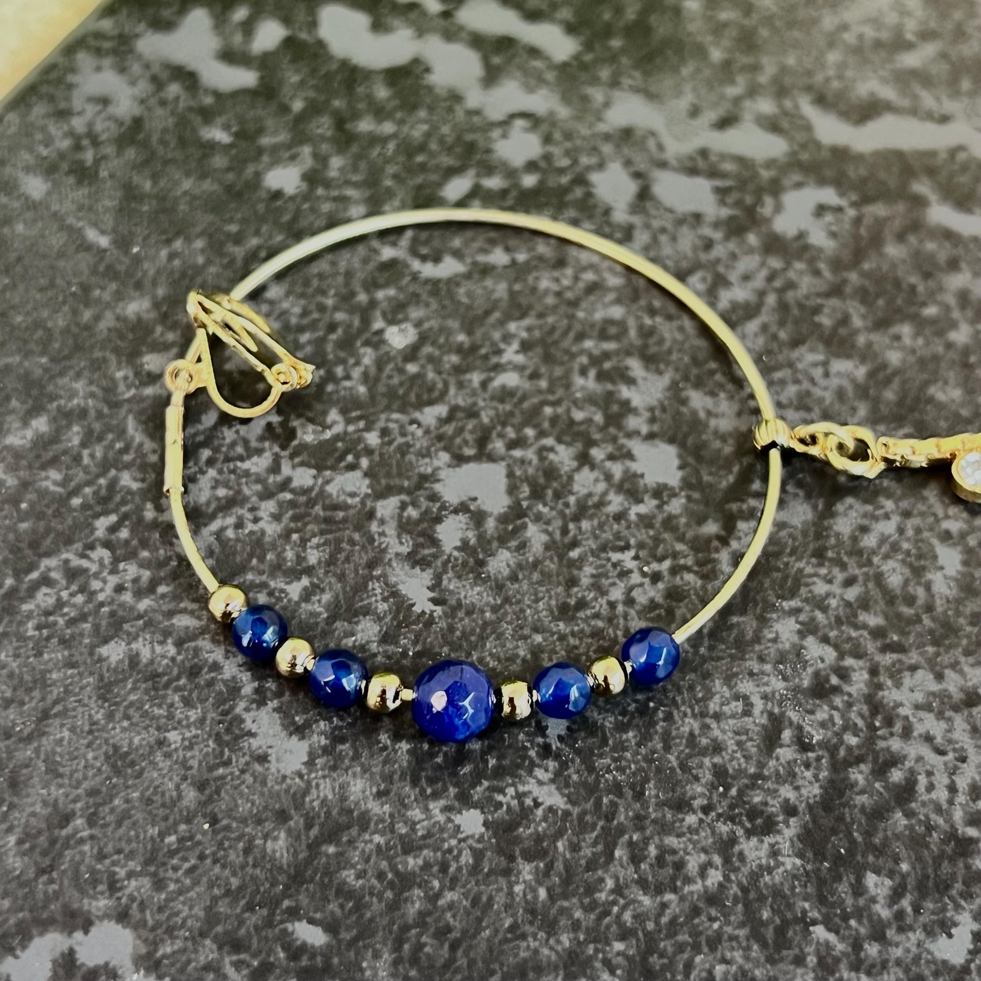 Antique gold base with navy & gold pearls medium clip on nose ring.