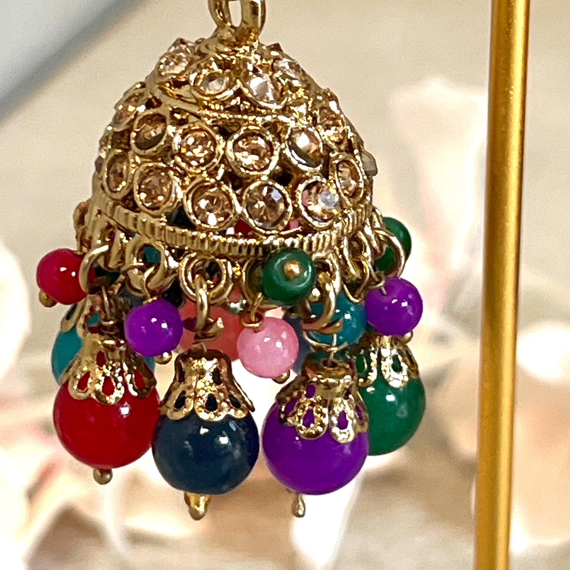 Gorgeous light weight multicolour jhumka earrings with matching tikka