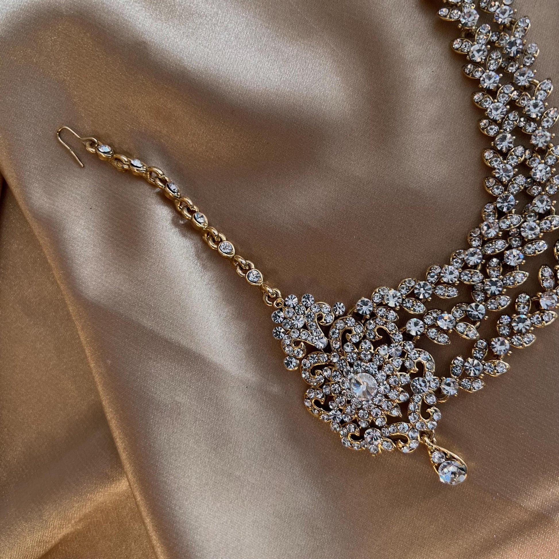 New Fashion Fancy Jhumar! Jhoomar Passa with Tikka One Piece Stylish Trending Indian Pakistani Style Bollywood Antique Gold Clear Rhinestone