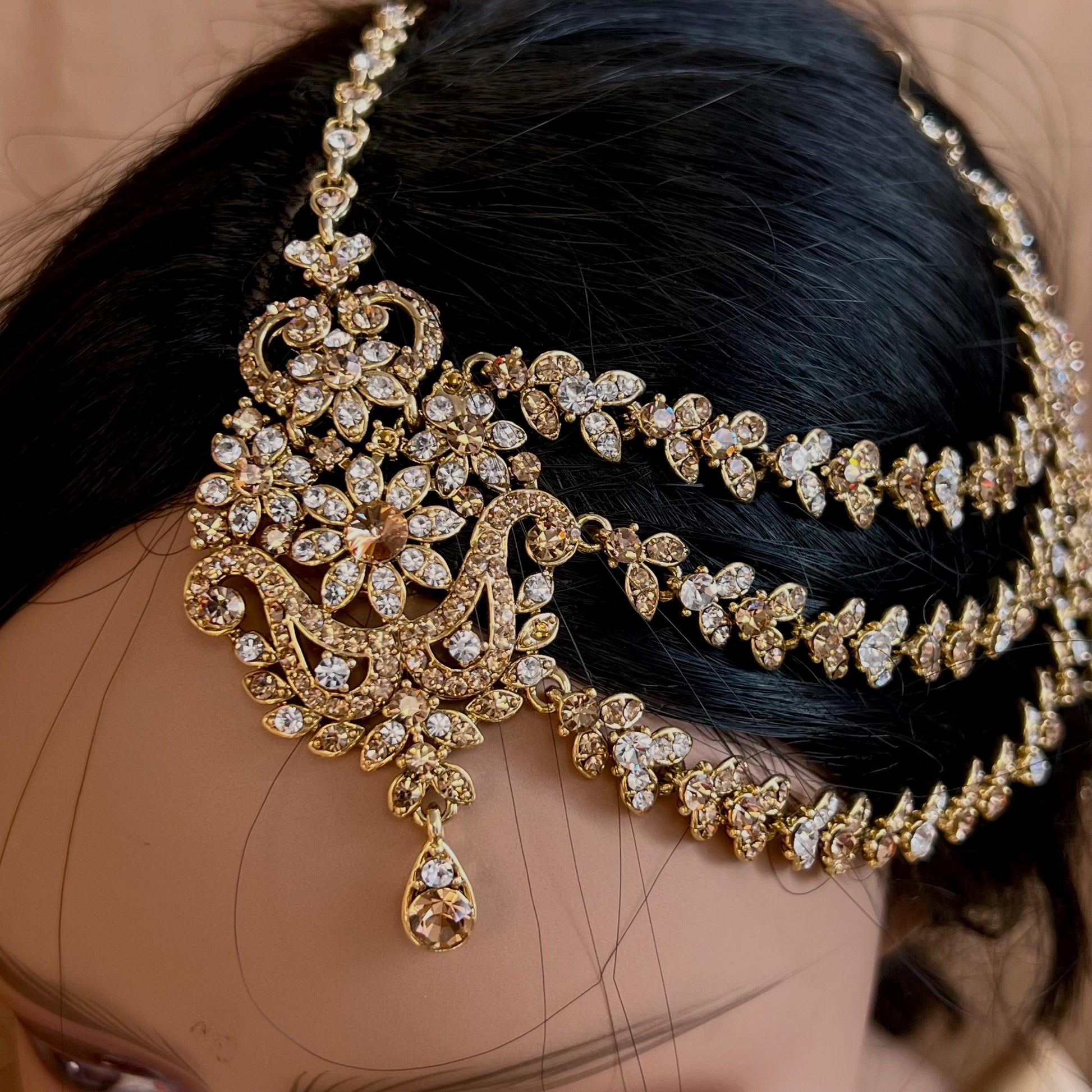 New Fashion Fancy Jhumar! Jhoomar Passa with Tikka One Piece Stylish Trending Indian Pakistani Style Bollywood Antique Gold Clear Rhinestone
