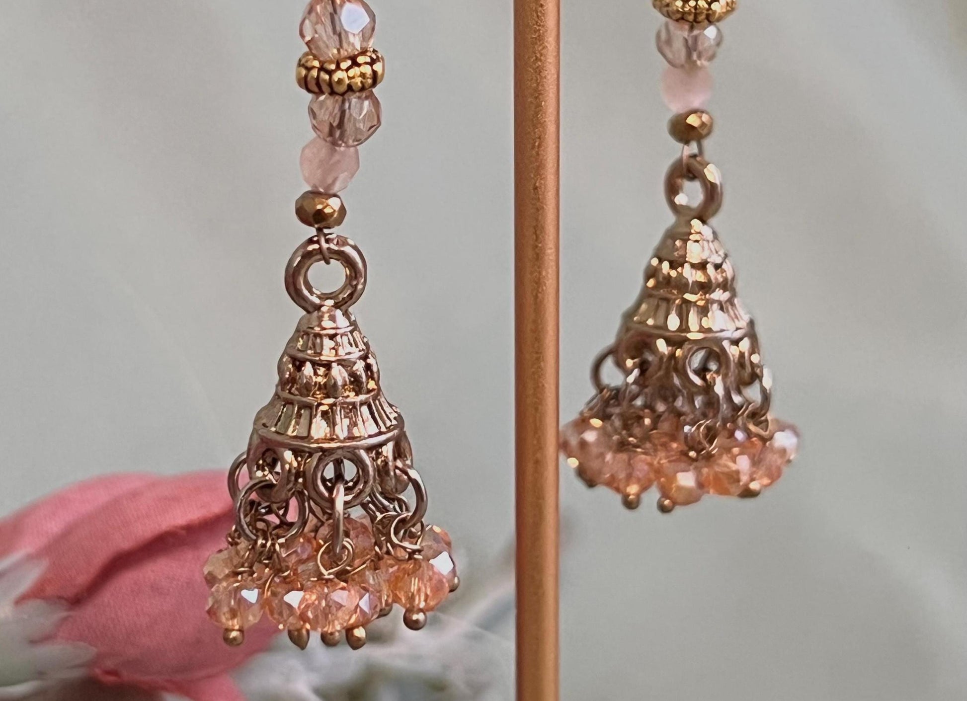 NEW! Micro Champagne Indian Jhumka Earrings/ Gift for Women/ Petite Earring/ Light Weight Indian/ Pakistani Style/Valentines gifts
