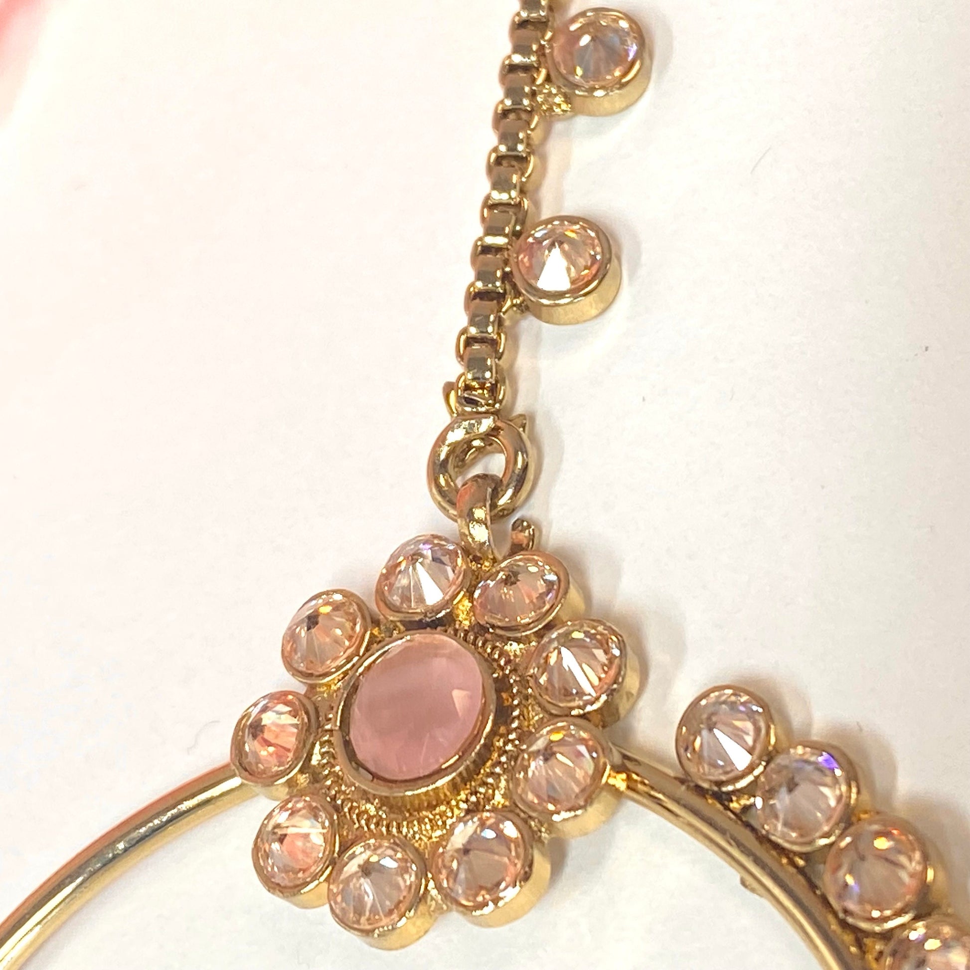 Large antique gold and champagne zircon crystal nose ring with light pink stone and bead, designed to be adjusted in with to hug the nostril tighly by sliding on.