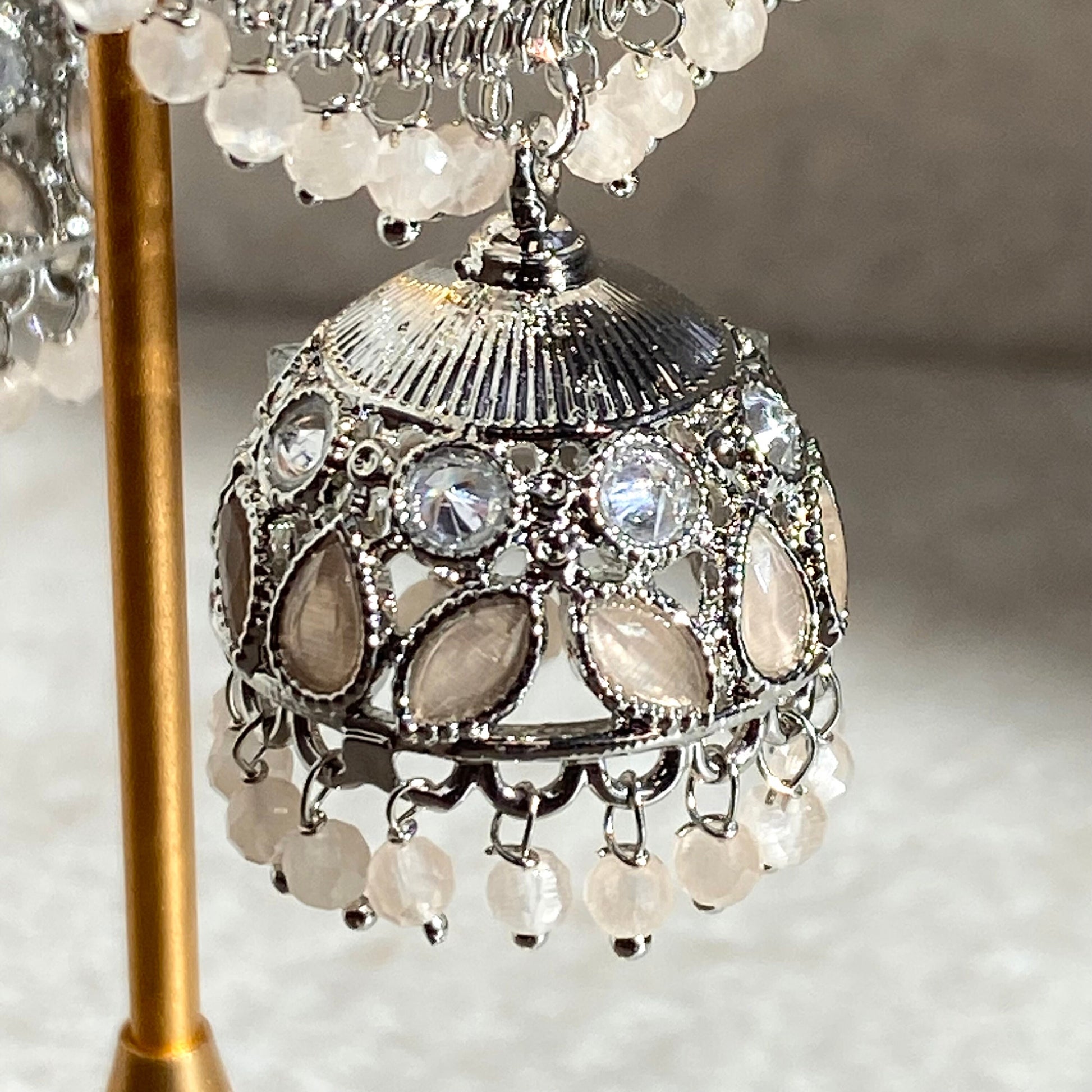 Pale Peach Silver Crystal Jhumka Indian Hoop Earring/Indian Earrings/Pakistani Fashion/Indian Jewellery/Silver Jewellery/Gifts for Women