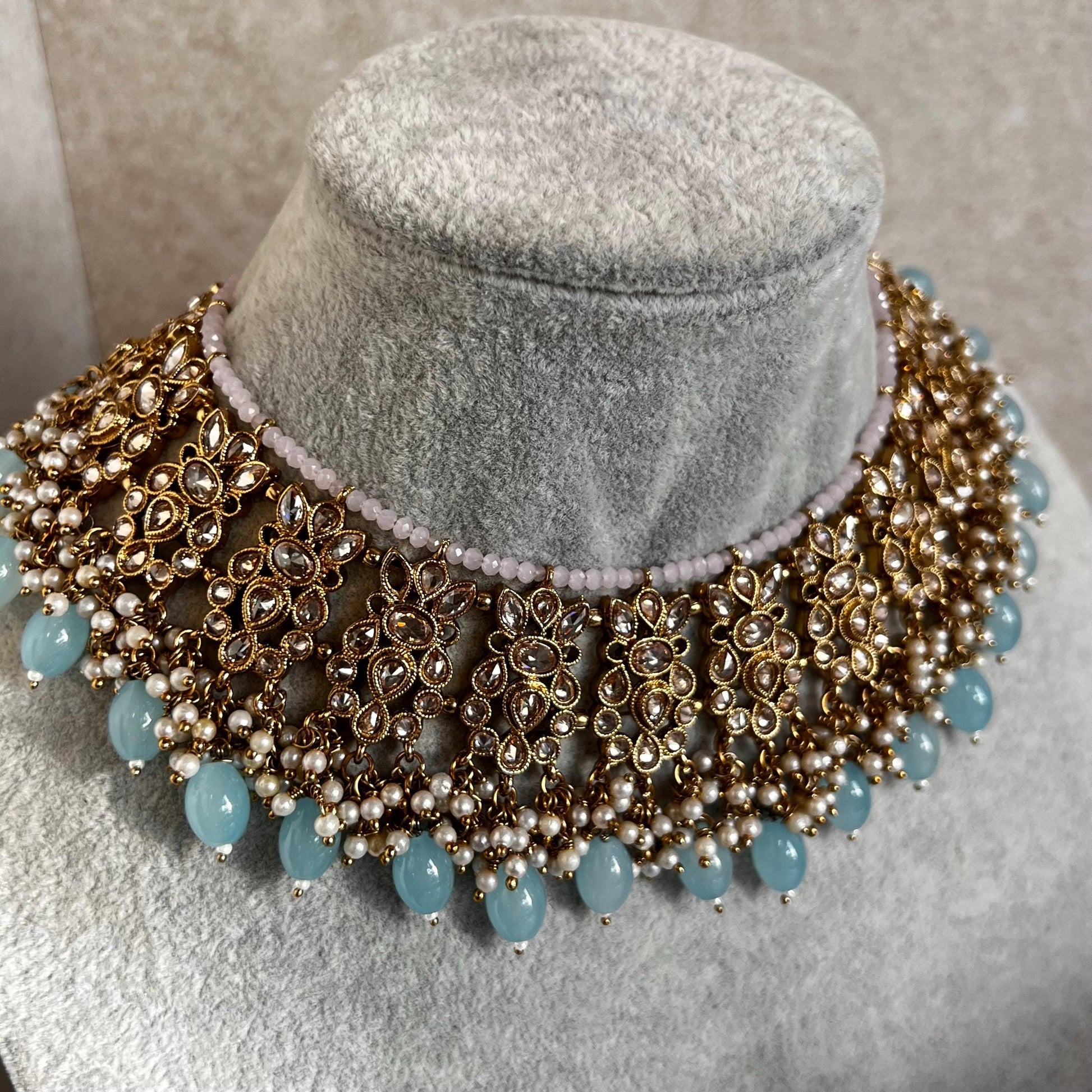 Pastel Choker Necklace Only ,Antique gold with Champagne Crystals- Indian/ Pakistani Style/Bridal/Wedding/ Single Pieces