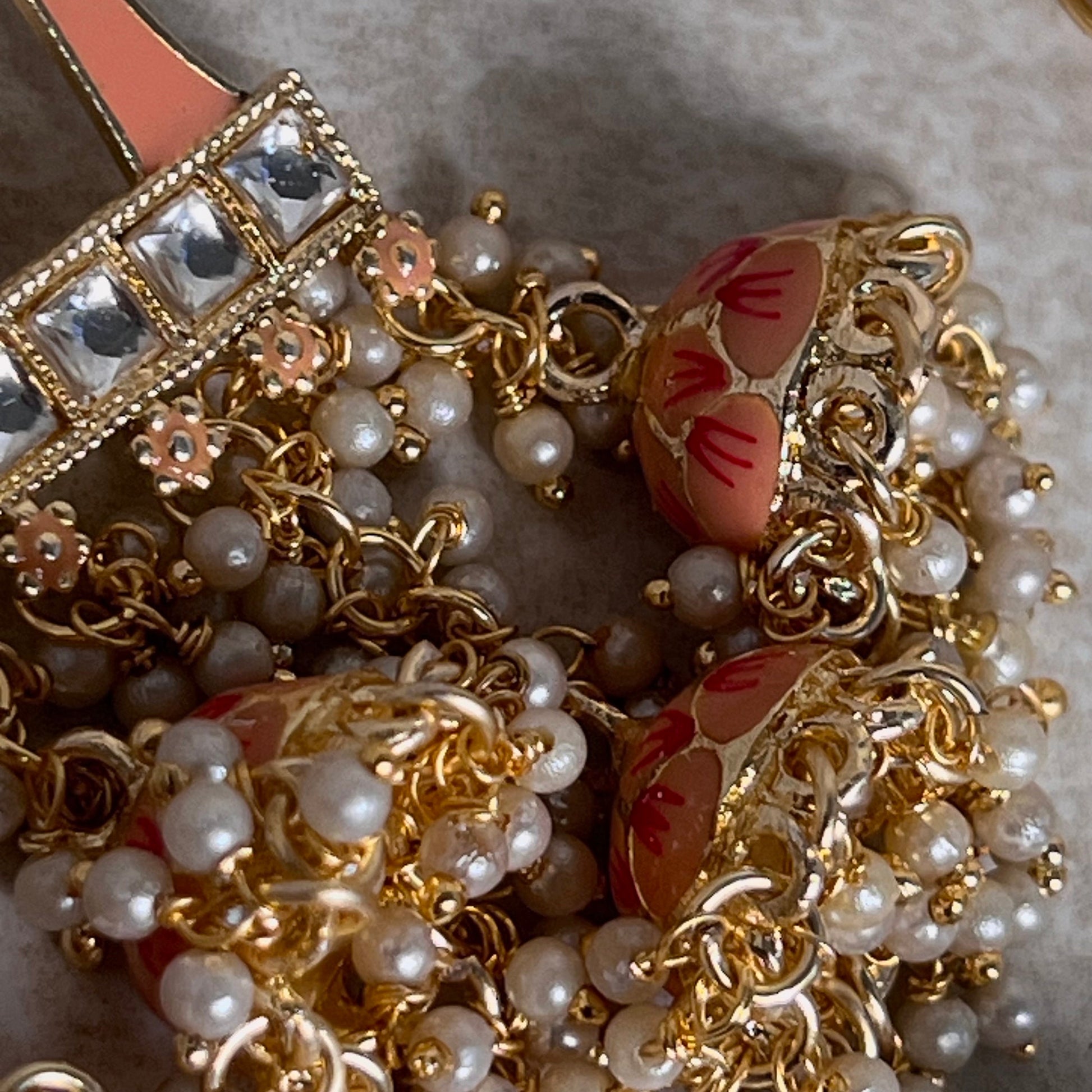 Peach and Pink Meenakari Hand Painted 3 Jhumka Earring / Indian Style/Unique Fancy Jhumka Earrings - NAVRATRI SPECIAL