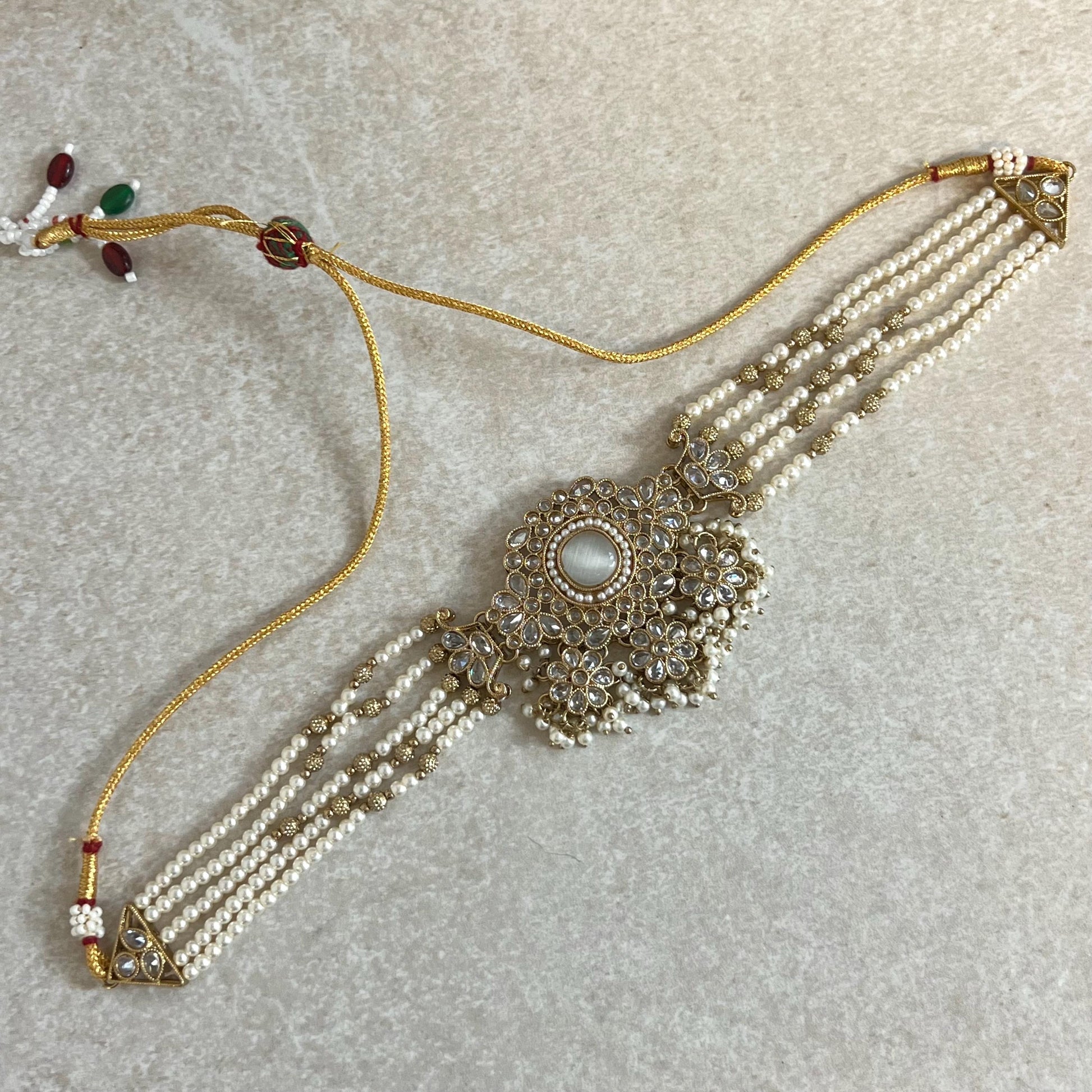 Pearl Clear Crystal Choker Only, Antique gold with Clear Zircon Crystals- Indian/ Pakistani Style/Bridal set/Wedding/ Light gold