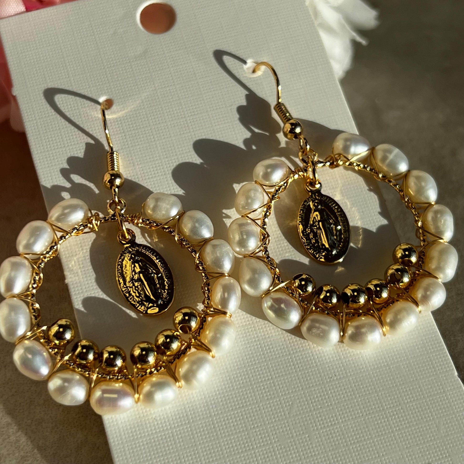Pearl Gold Hoop Earring Lightweight High Quality Hypoallergenic Trnding Stylish Gift for Her Everyday Wear 1 inch