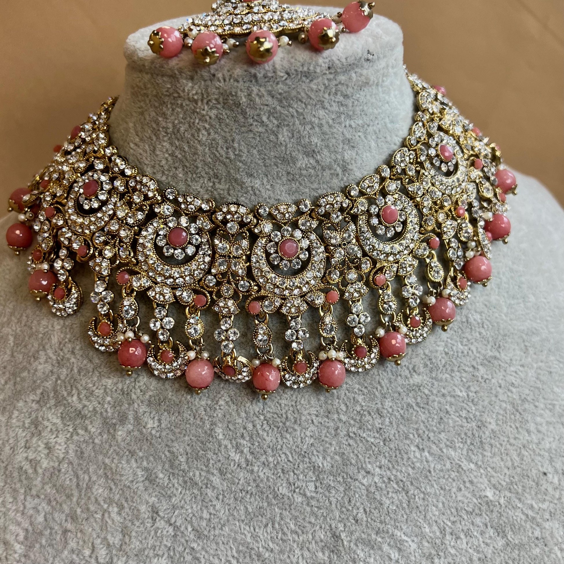 Pink Clear Crystal Necklace Set/Pink Jewellery Indian/ Pakistani/Fashion Jewellery/ Gift for Women