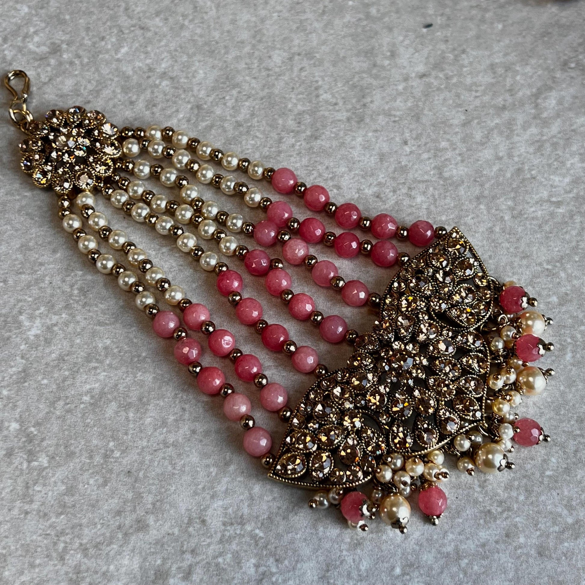 Pink Coral Golden Full 8 Piece Bridal Necklace Set Traditional Indian Pakistani Style Wedding Fashion Jewellery Heavy Necklace set Sale