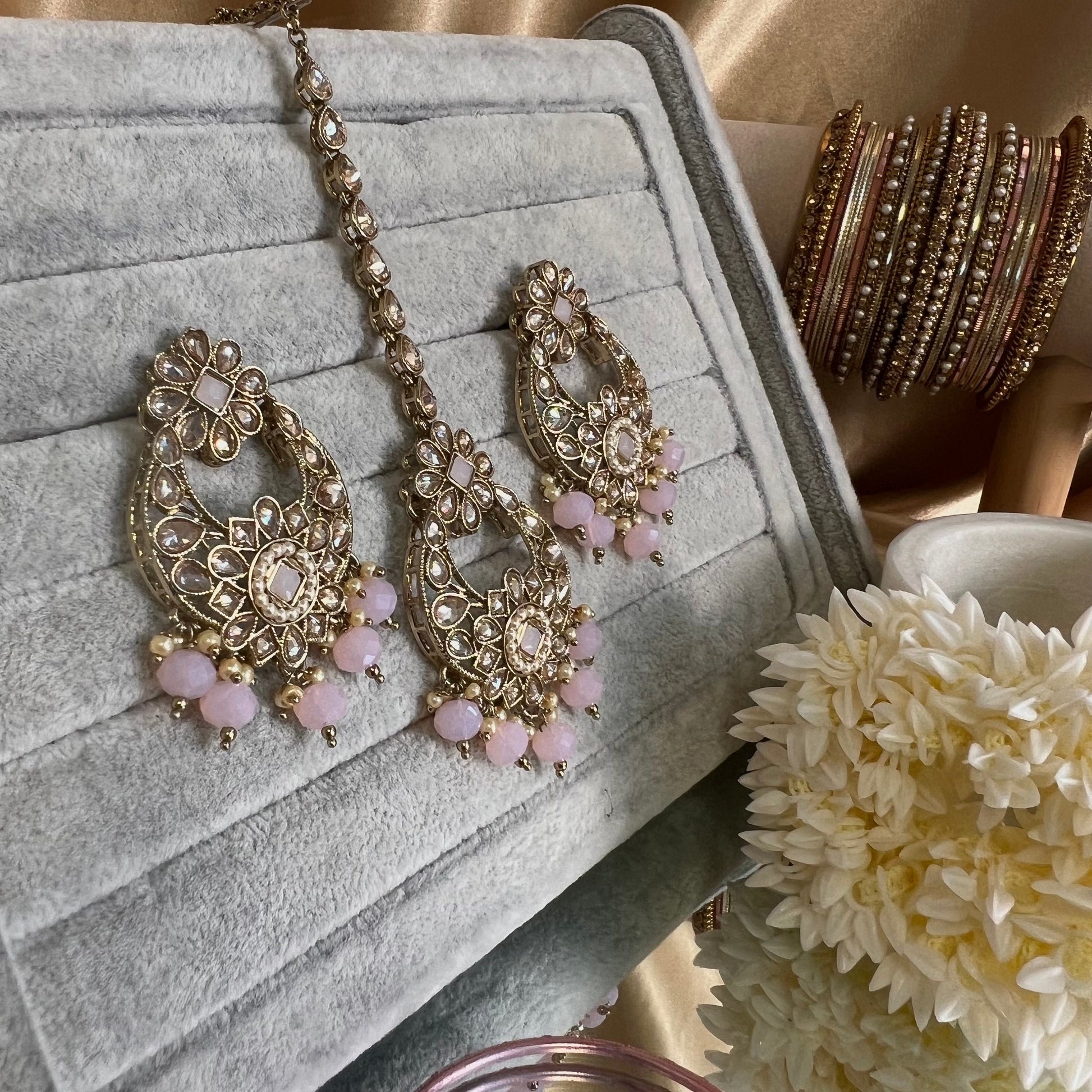 Pink Earring and Tikka set/ Flat Earring Indian/ Pakistani Style