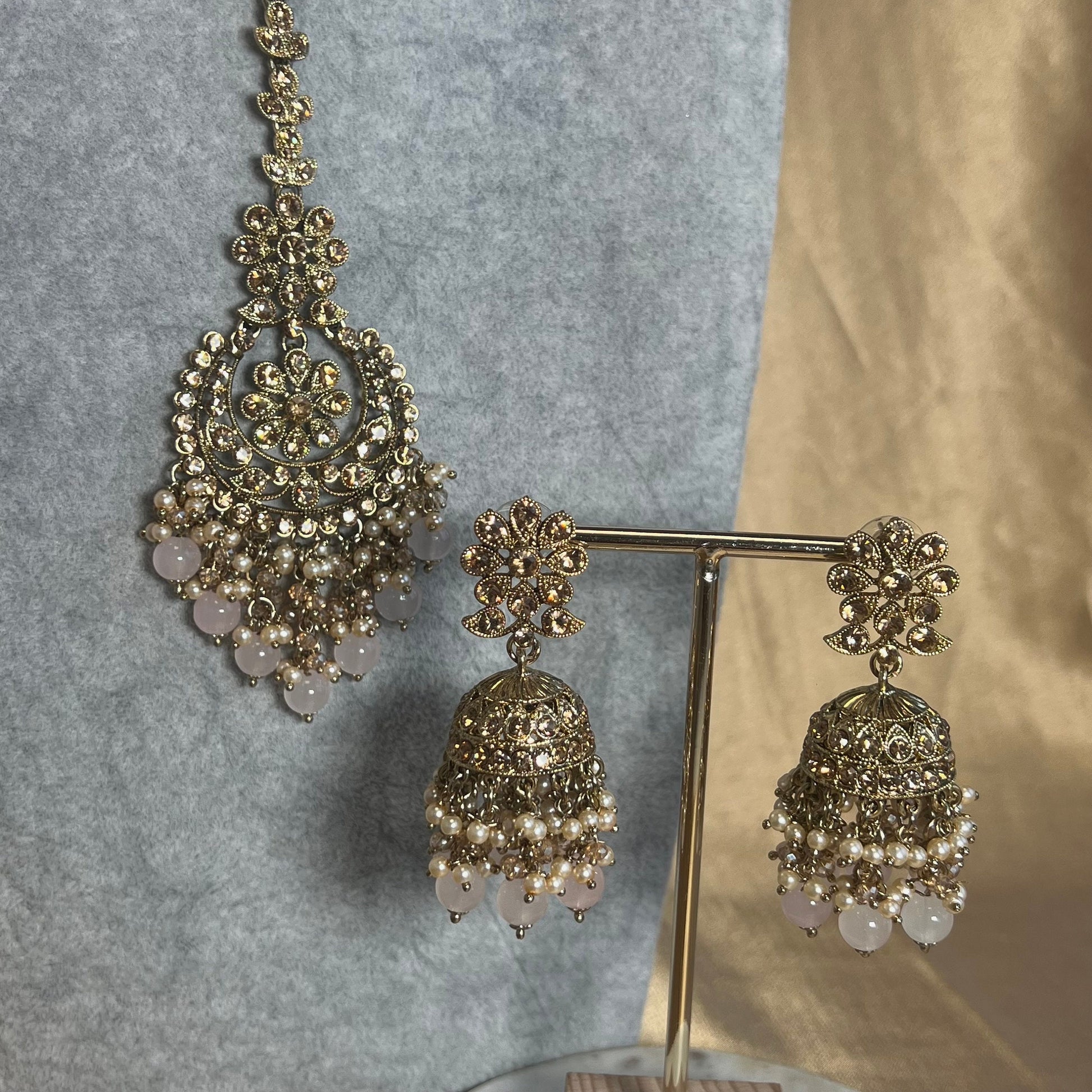 Pink/Golden Choker Set - Pink Earring/PinkTikka/ Tikli/ Indian/ Pakistani/Fashion Jewellery/ Gift for Women