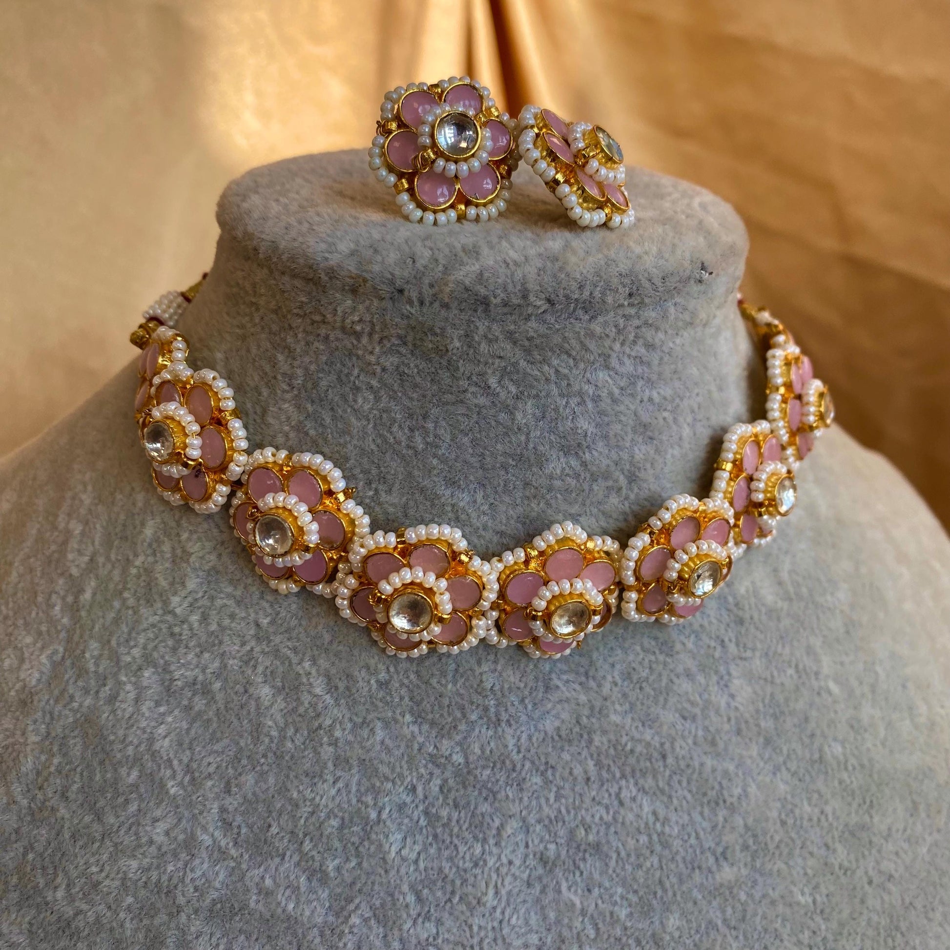 Simple but elegant Kundan choker with pink flower detail -Does not include tikka.
