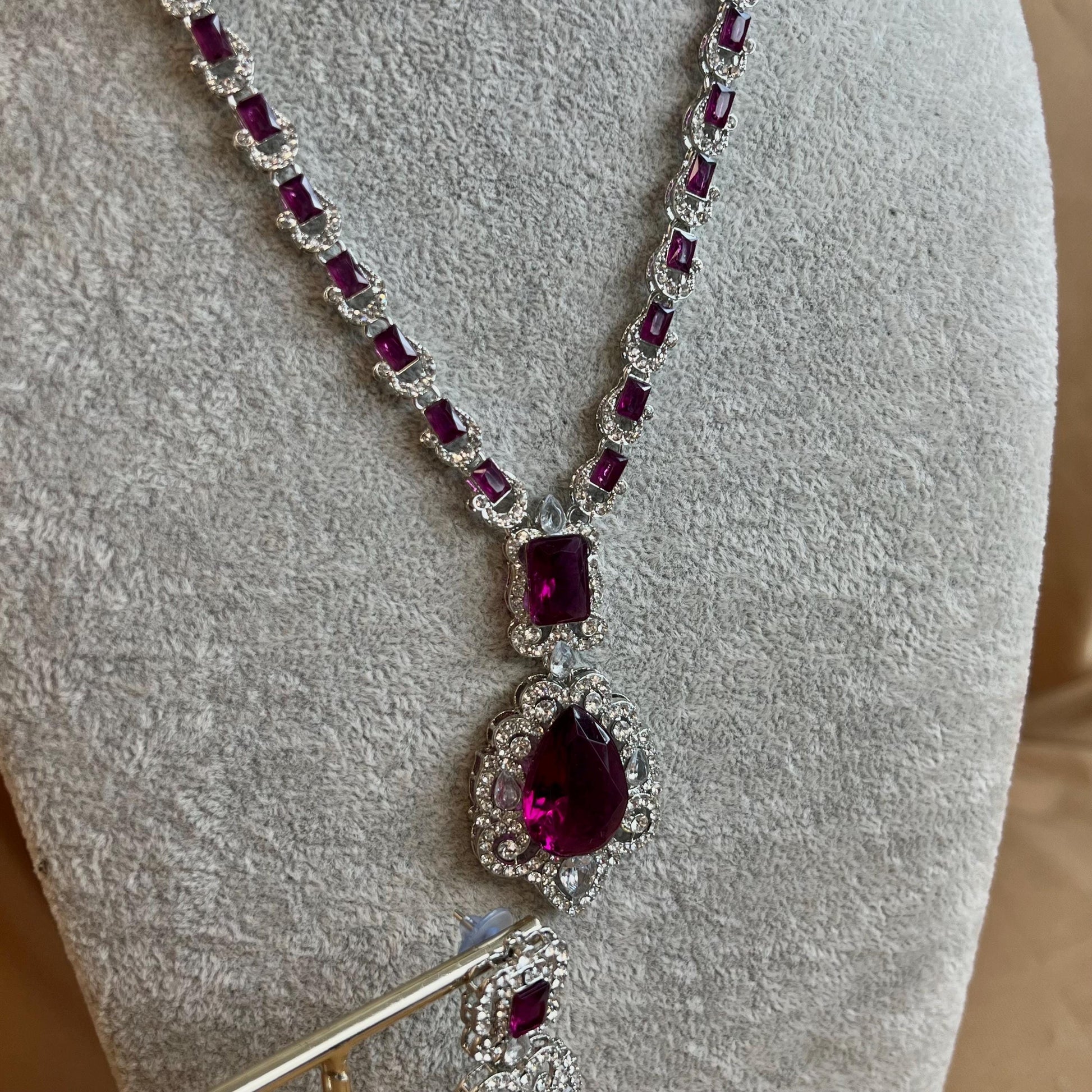 Purple Silver Short Necklace with Earring/Reception/Christmas/New Years Party/Fashion Jewellery/ Gift for Women/Purple Jewellery