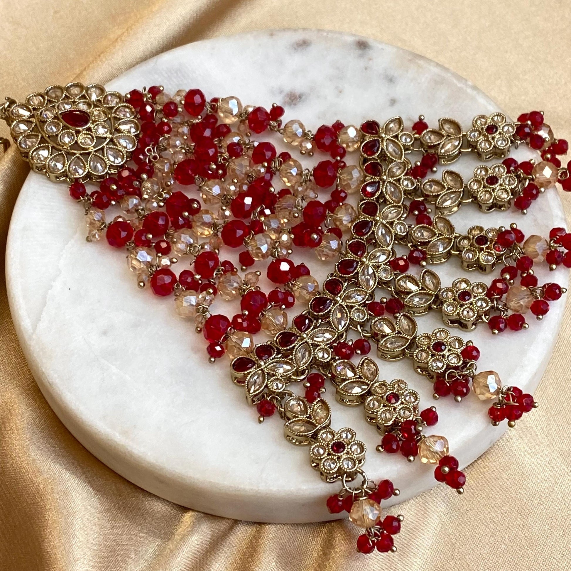 Red Antique Gold Champagne Jhumar Passa Hair Accessory Bridal Wedding Jewellery Indian Pakistani Bollywood SALE