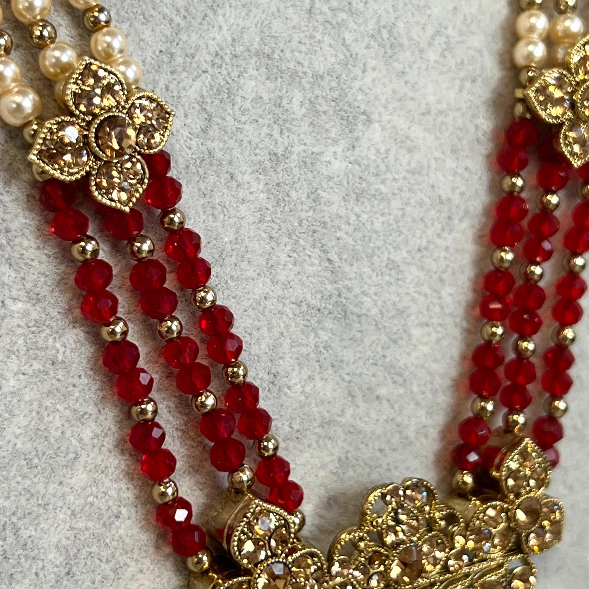 Red-Antique Gold with Golden Rhinestone/ Long Mala/ Haar/ Long Necklace/ Unique Style/ Indian/ Pakistani/Fashion Jewellery/ Gift for Women