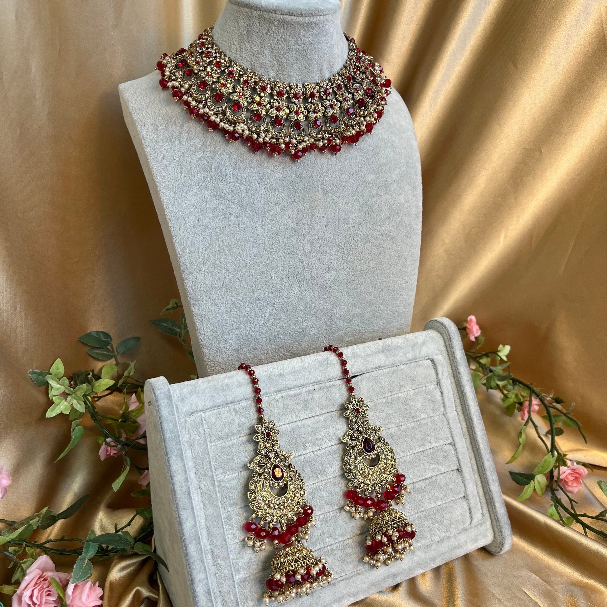 Red Necklace and Earring/ Tikka/ Tikli/ Indian/ Pakistani/Fashion Jewellery/ Gift for Women