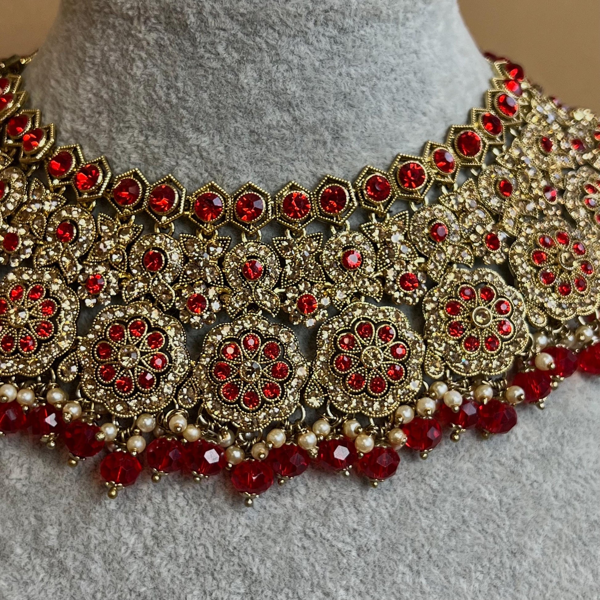 Red Necklace Set With Earrings Only - Red/Indian/ Pakistani Style/ Choker/ Earring/ Tikka/Wedding/Party