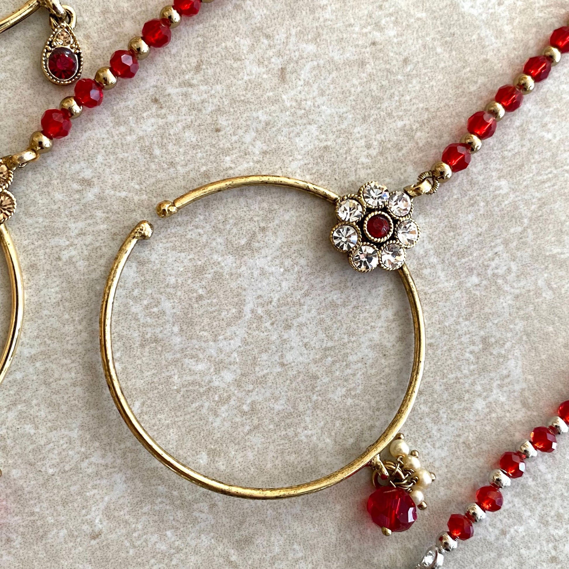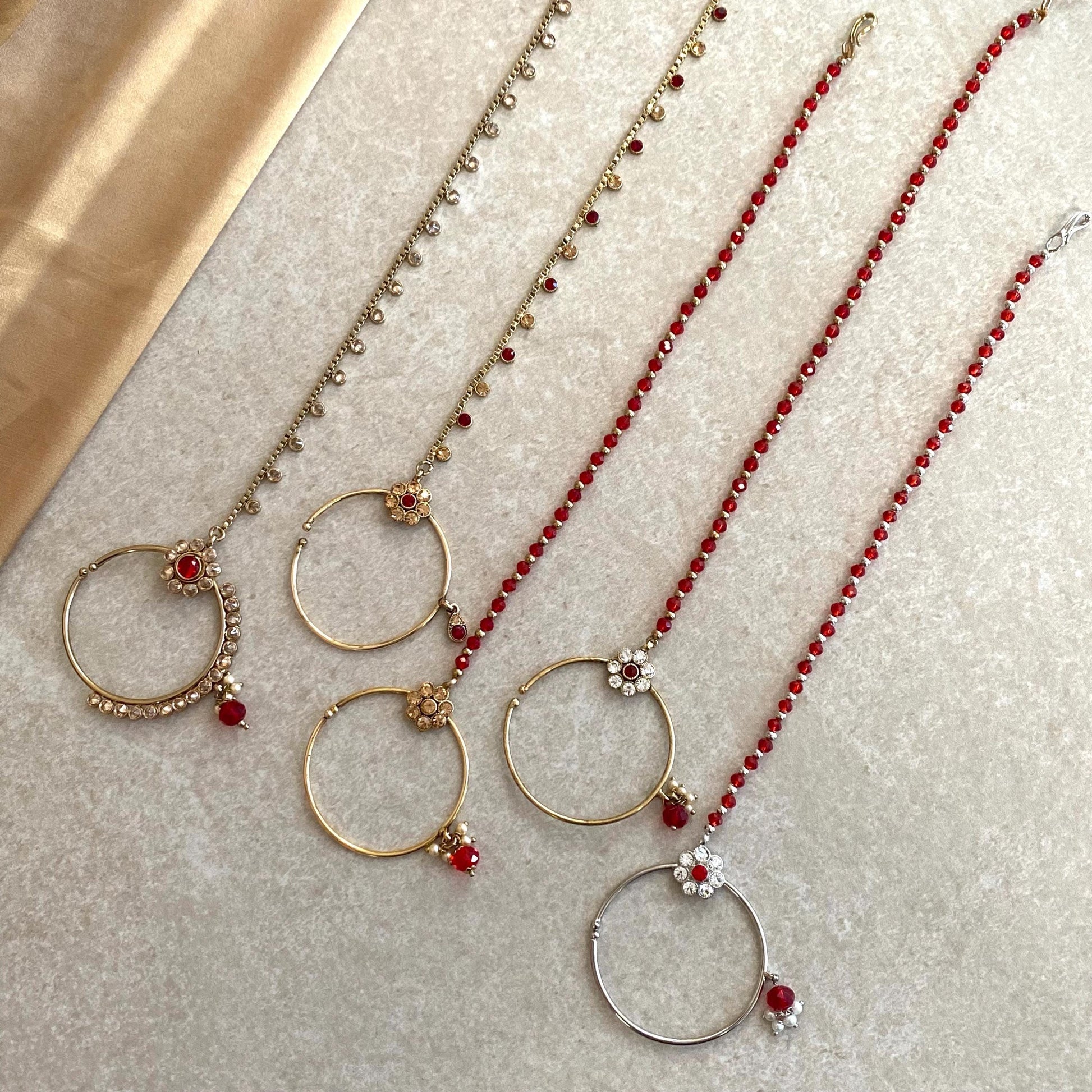 RED Non-Piercing Slide Type Nose Ring - Green/ Fashion Jewellery/ Gift for Women/Indian/Pakistani style/Nath/ Choose Style