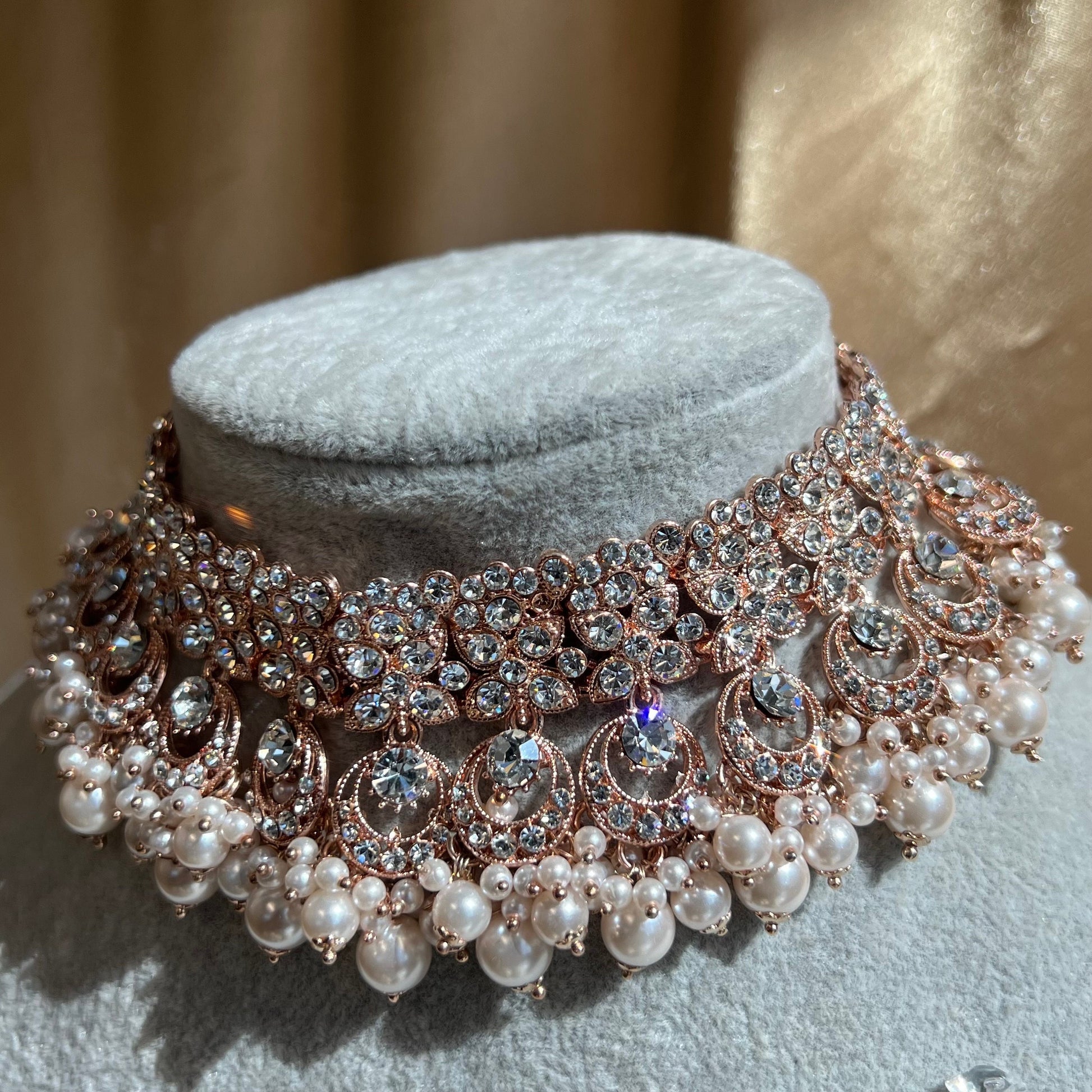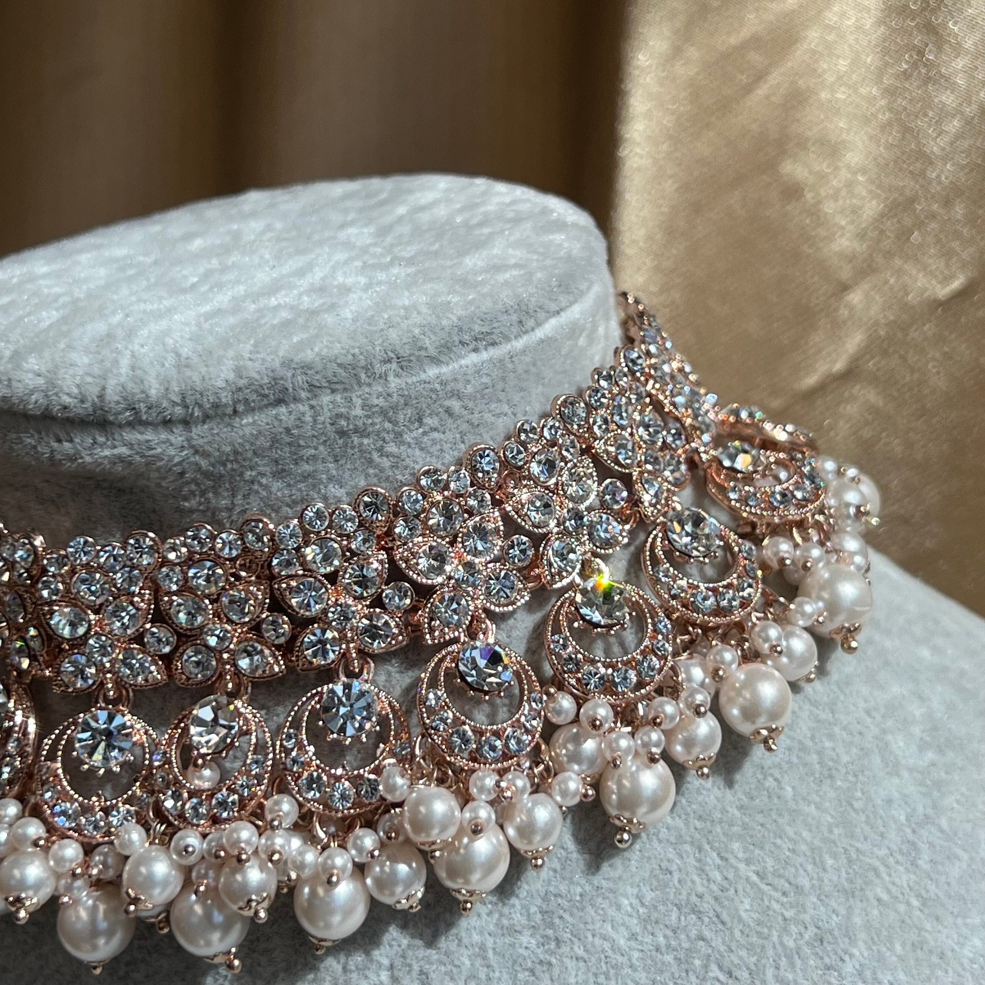Rose Gold Choker Set /Light pink/Earring and Tikka/Indian/ Pakistani/Fashion Jewellery/
