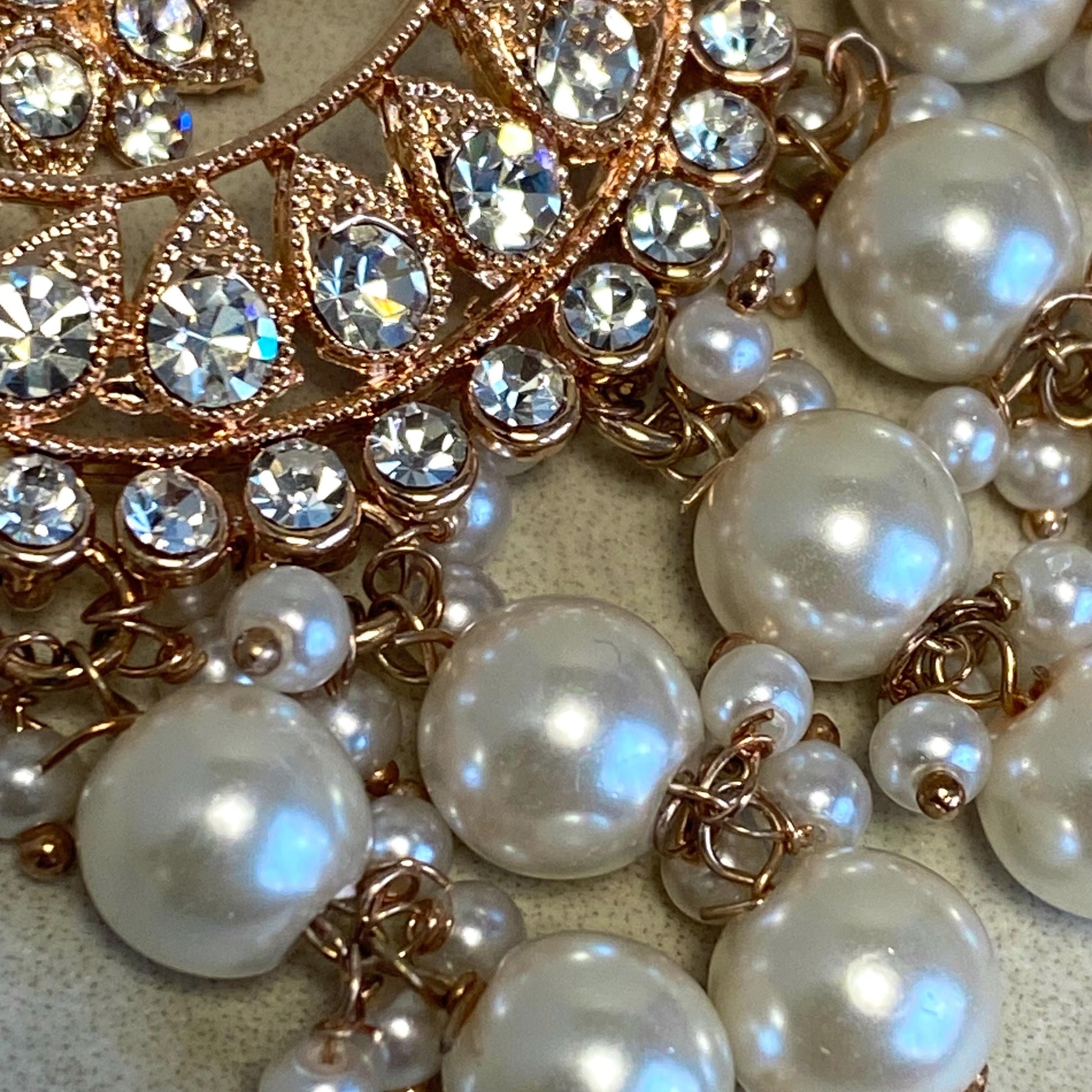 Rose Gold Pearl Rhinestone Maang Tikka Bindya Indian Pakistani Bollywood Headpiece Mendhi Jewels Gift Fashion