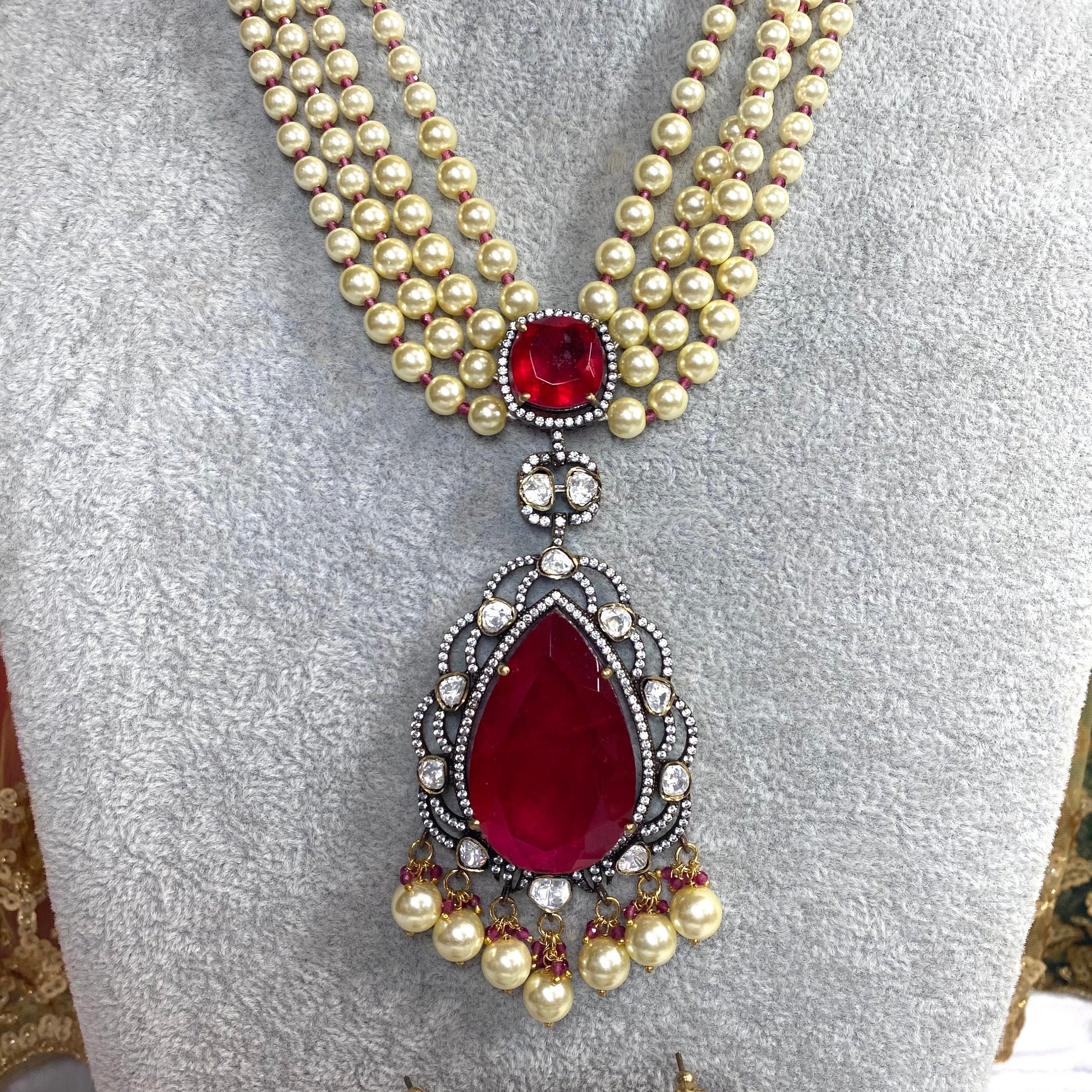 Ruby long necklace set - pearl Earring/ Tikka/ Tikli/ Indian/ Pakistani/Fashion Jewellery/ Gift for Women