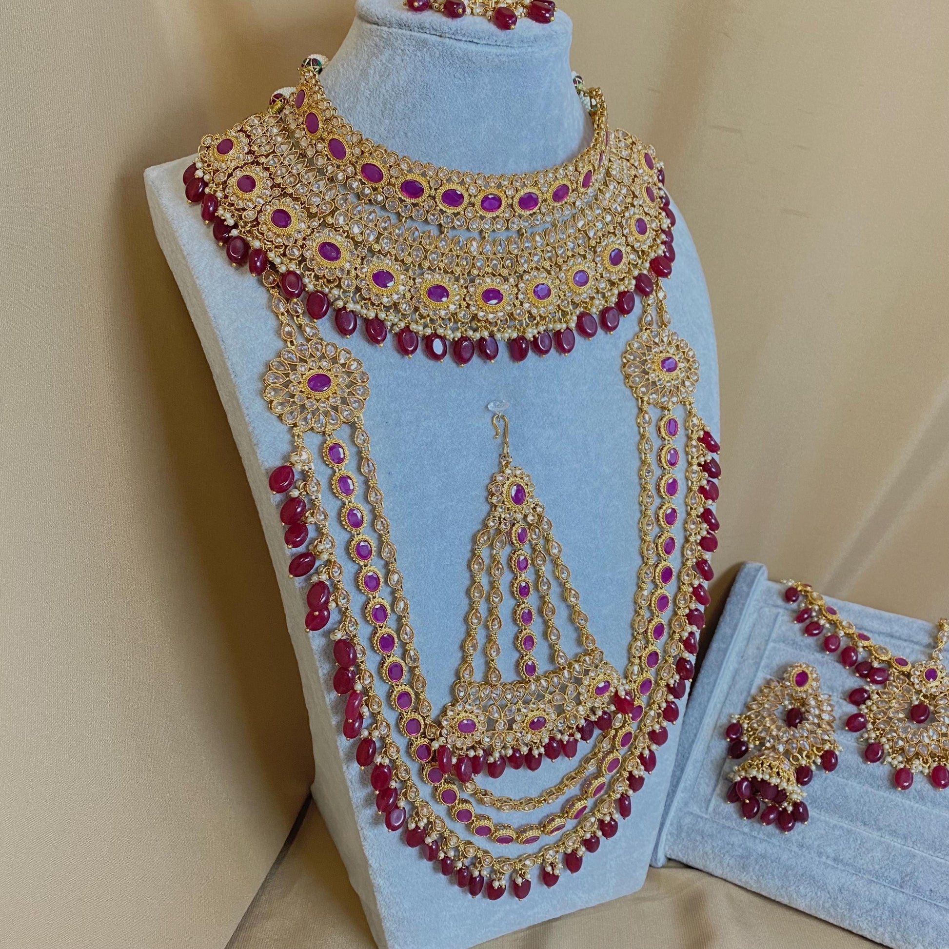 Ruby/ Maroon/Dark Purple Gold Rhinestone Necklace Set Earring and Tikka/ Indian/ Pakistani/Fashion Jewellery/ Gift for Women/ Diwali/ Eid/