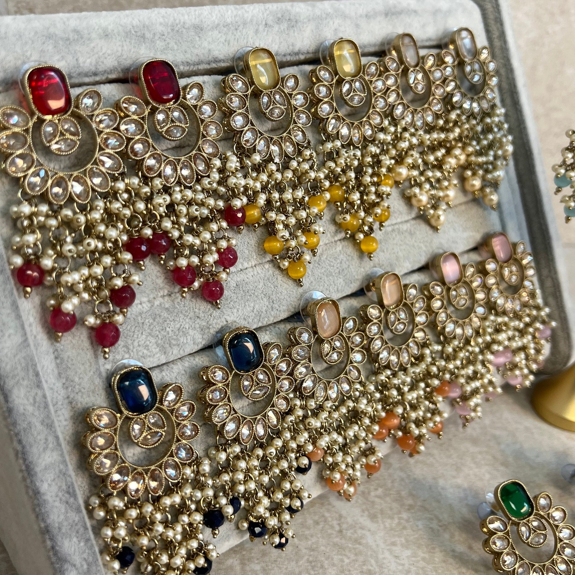 The most stunning multi colour crystal drop earrings, lightweight and adorned with zircon crystals and beautiful bead work.