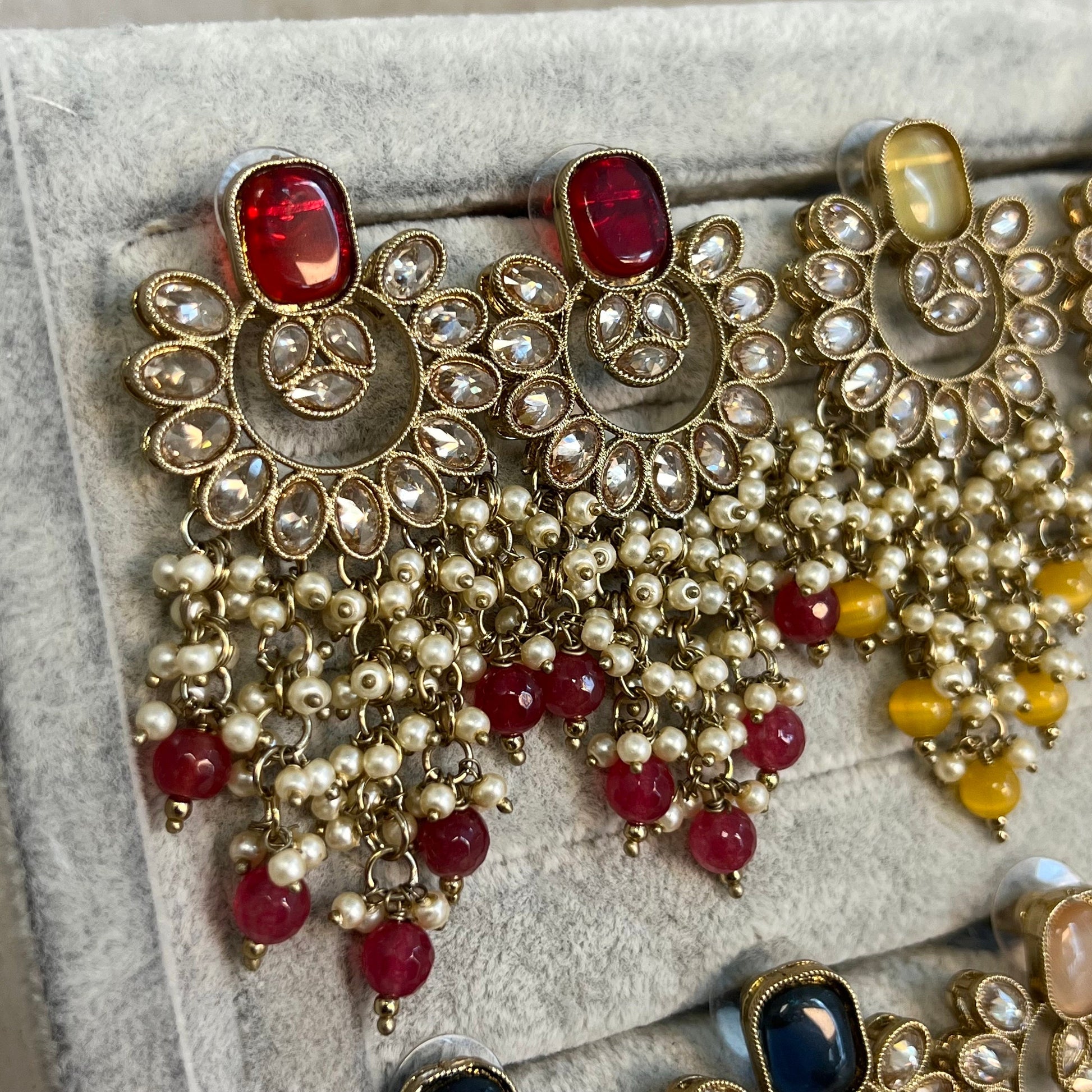 Ruby/Maroon/ Red Shade / Long Crystal Earrings/ Fashion Jewellery/ Gift for Women/Indian/ Pakistani Style