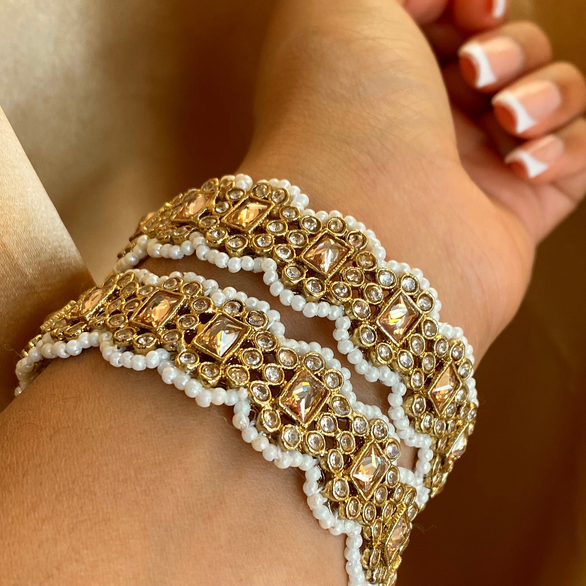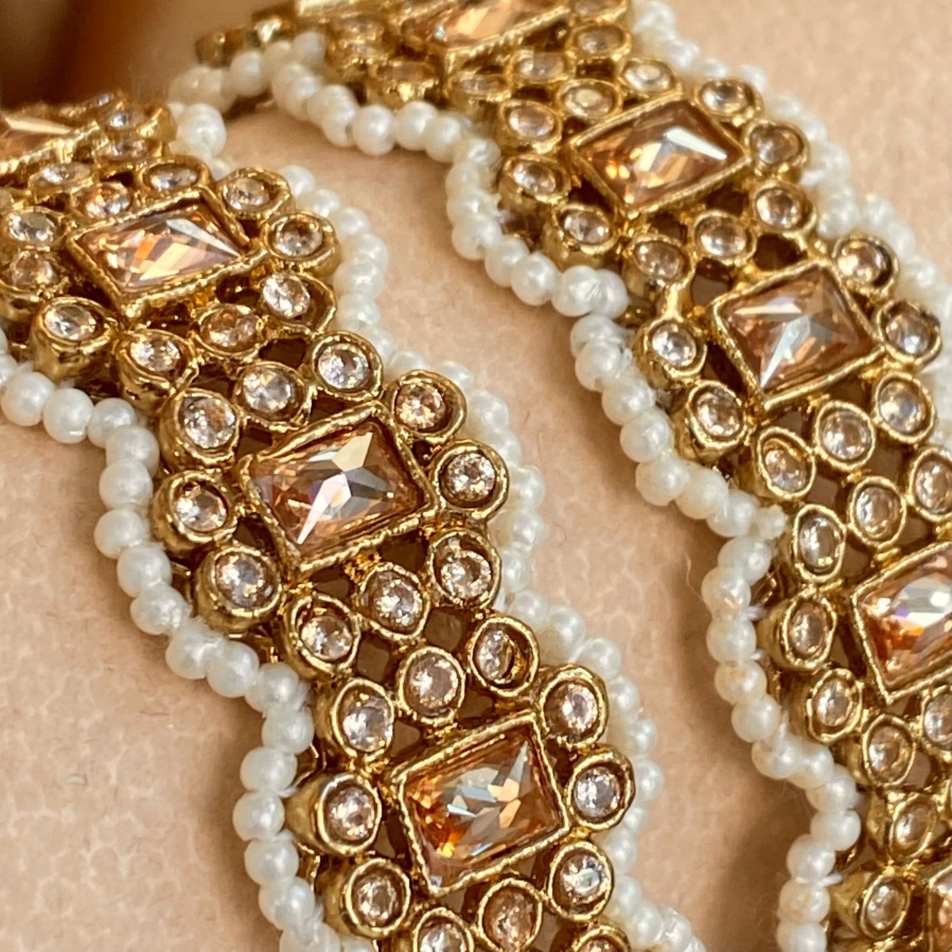 Set of 2 Gold/ Champagne/ Pearl Bangles - Indian/ Pakistani/Jewelley/ Fashion Bracelet