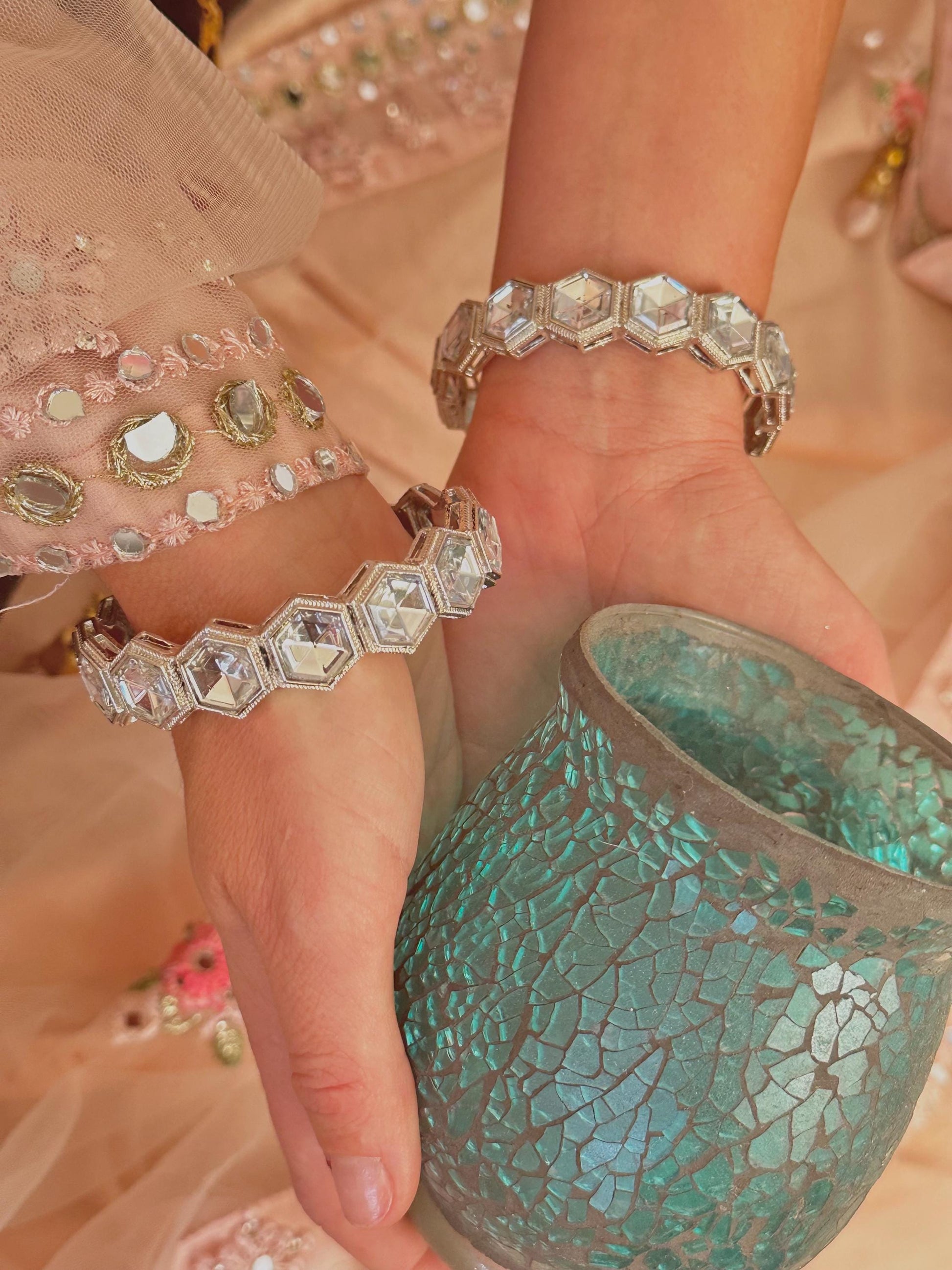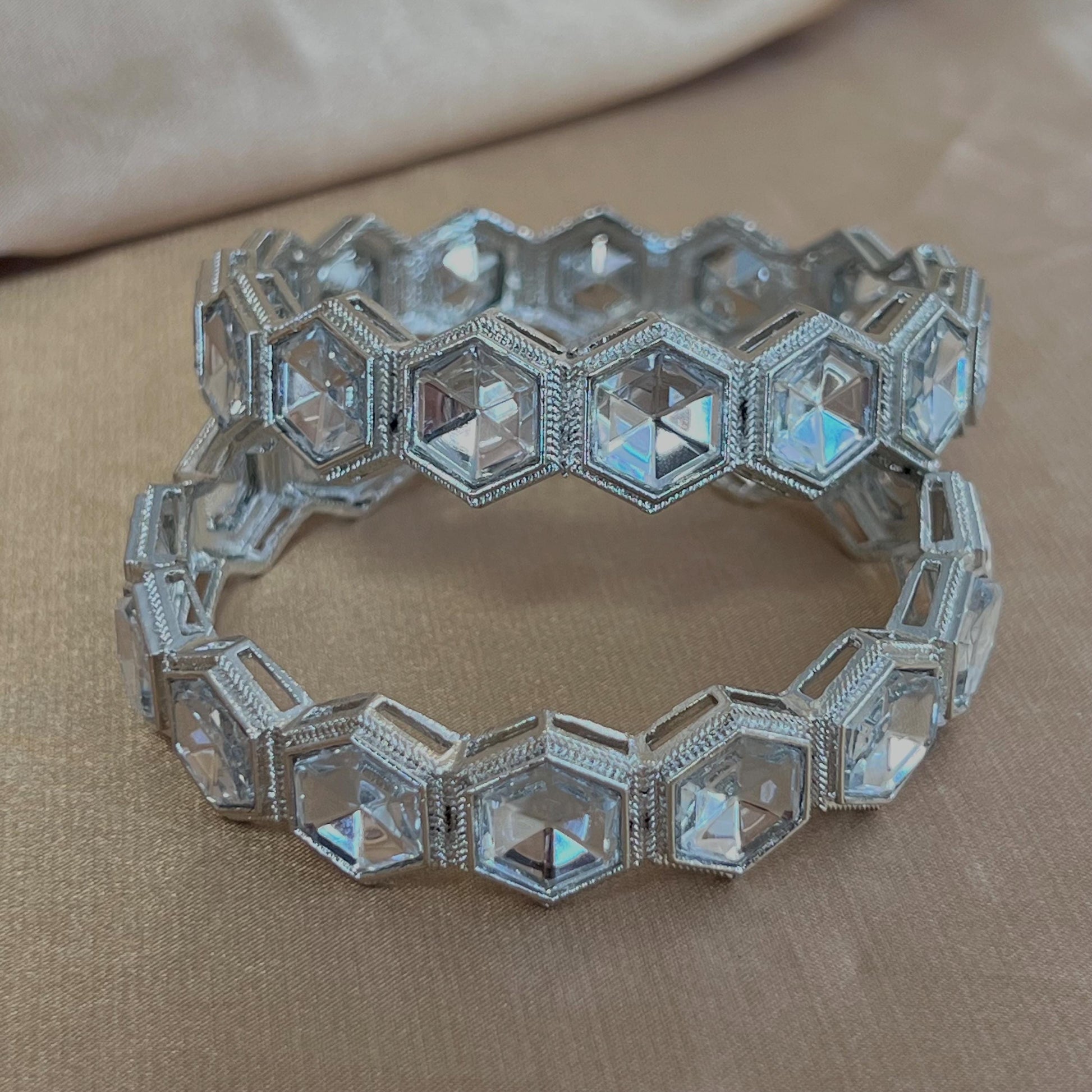 Set of 2 Silver Faux Kundan Kada Bangles in 2.6 /Jhumki Bangles/Indian/ Pakistani/Jewelley/ Fashion Bracelet