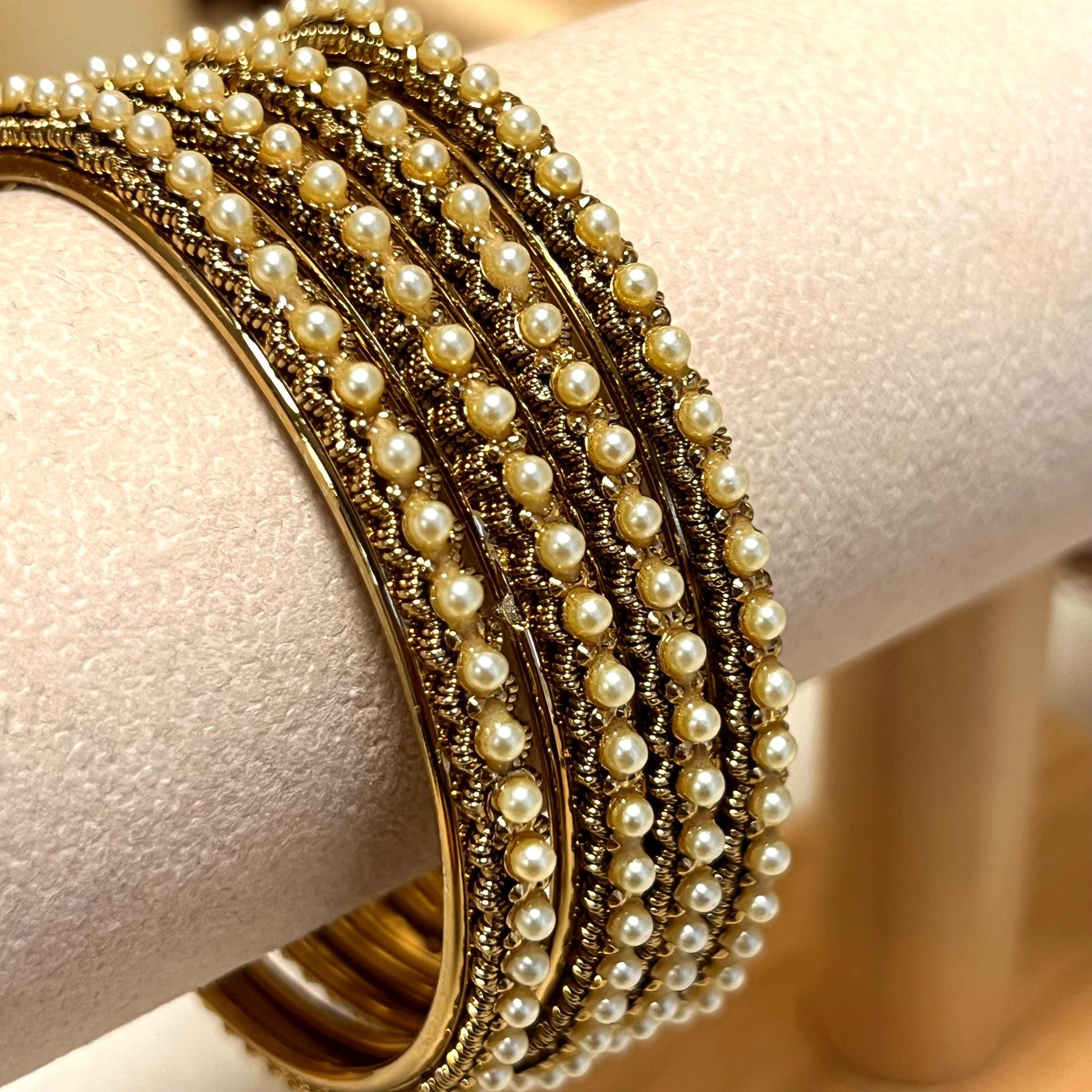 Set of 4 Golden Pearl Bangles/Indian/ Pakistani/Jewelley/ Fashion Bracelet/ 2.8 only