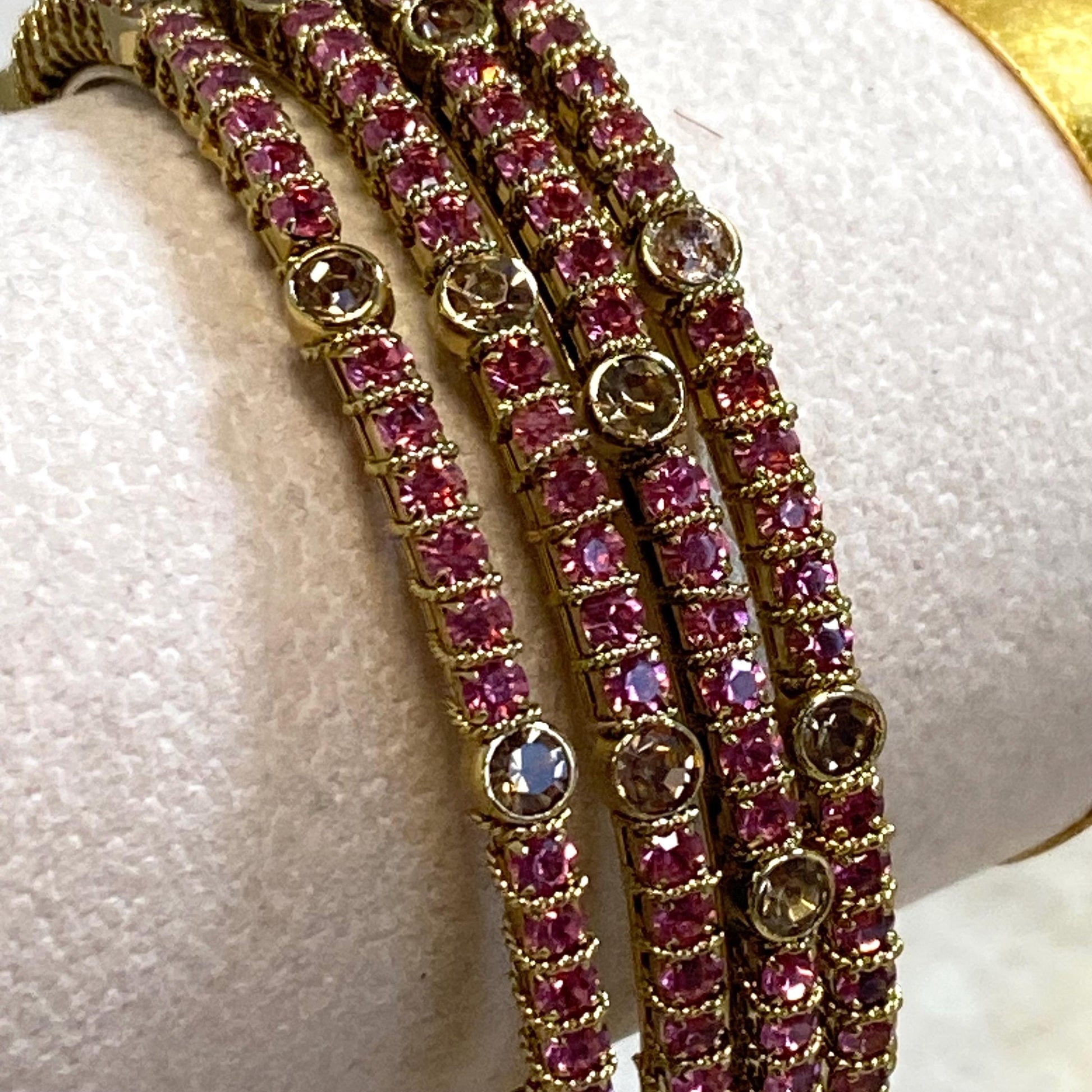 Set of 4 Rhinestone Bangles - Antique Gold Base/ Golden Stones Indian/ Pakistani/Jewelley/ Fashion Bracelet/2.8 only / Choose Colour