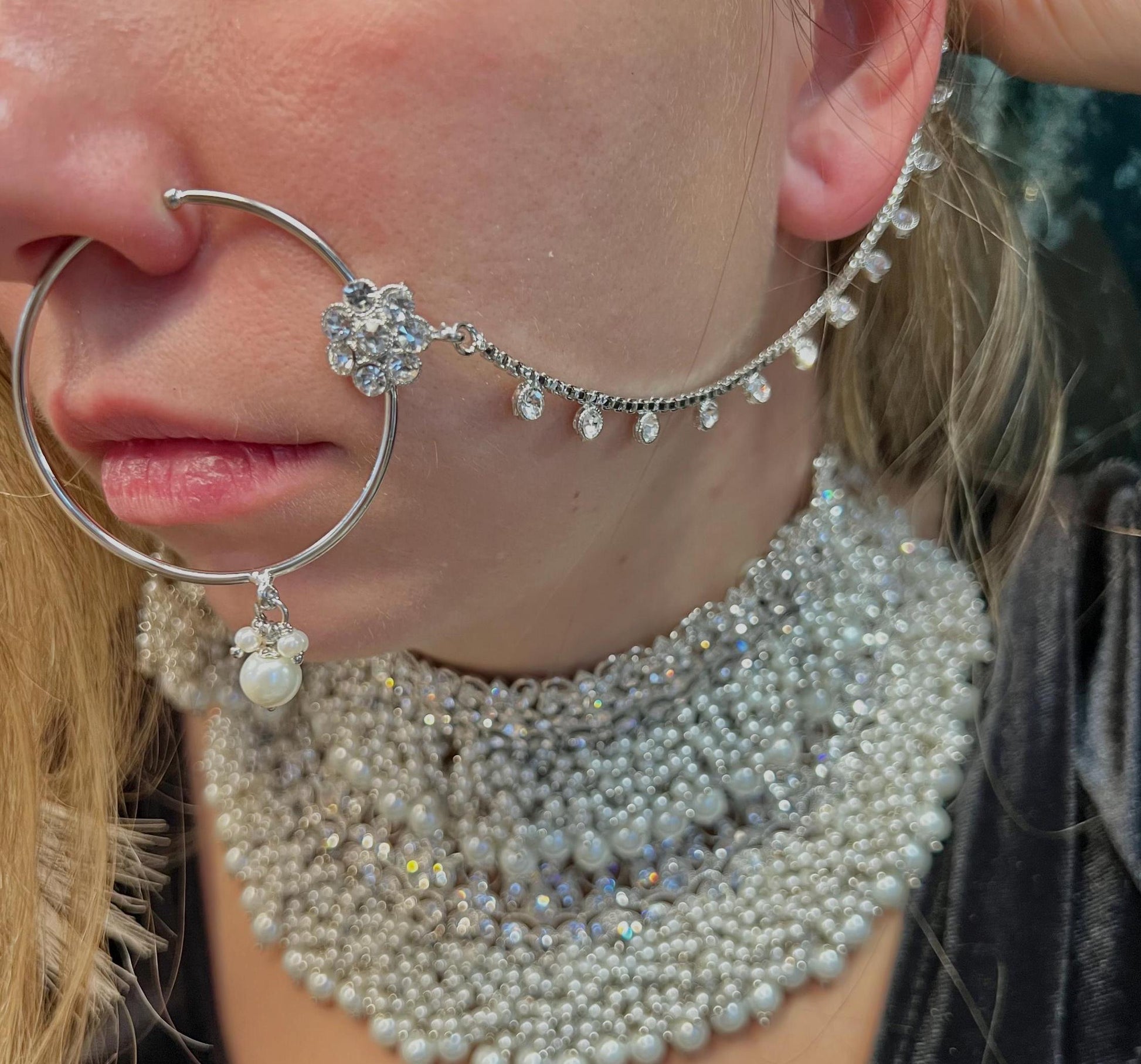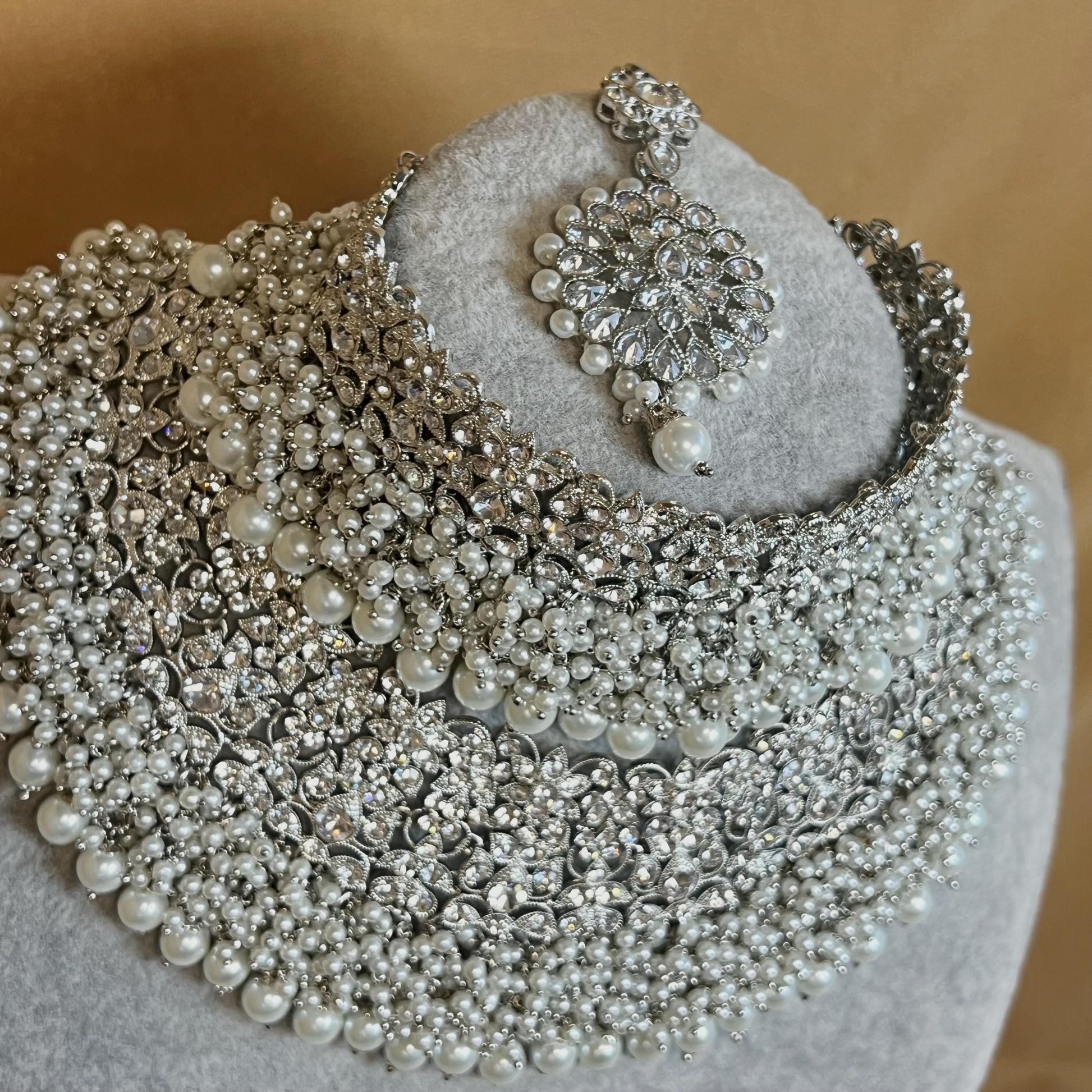 Silver Bridal Set - Pearl Indian/ Pakistani Style With Jhumka earring, Tikka/Tikli, Jhumar/jhoomar/ Wedding/ Fashion Jewellery/ Necklace set