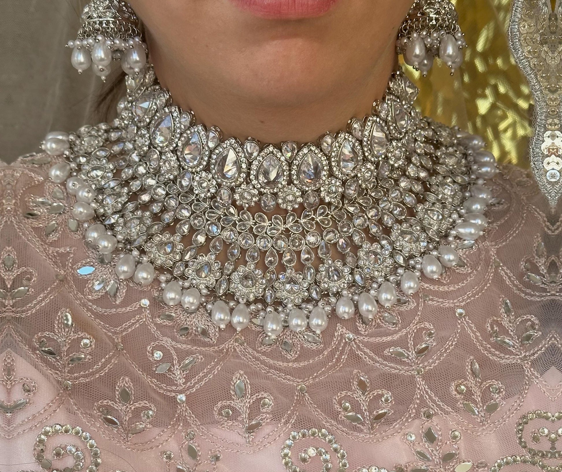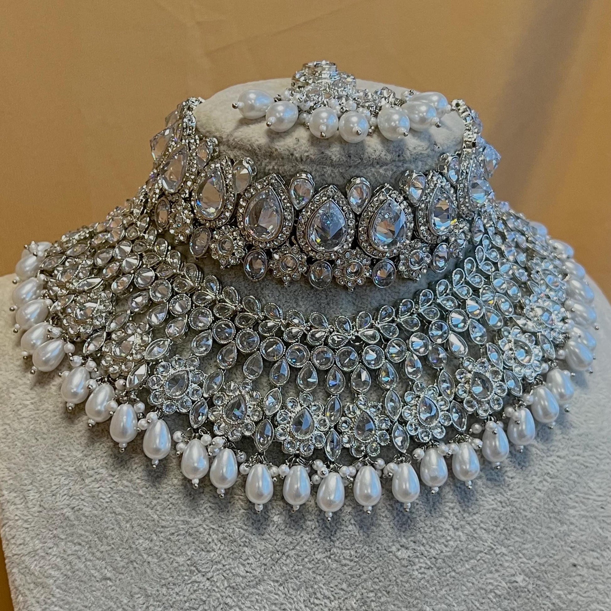 Silver Bridal Set - Pearl Indian/ Pakistani Style With Jhumka earring, Tikka/Tikli/ Wedding/ Fashion Jewellery/ Necklace set