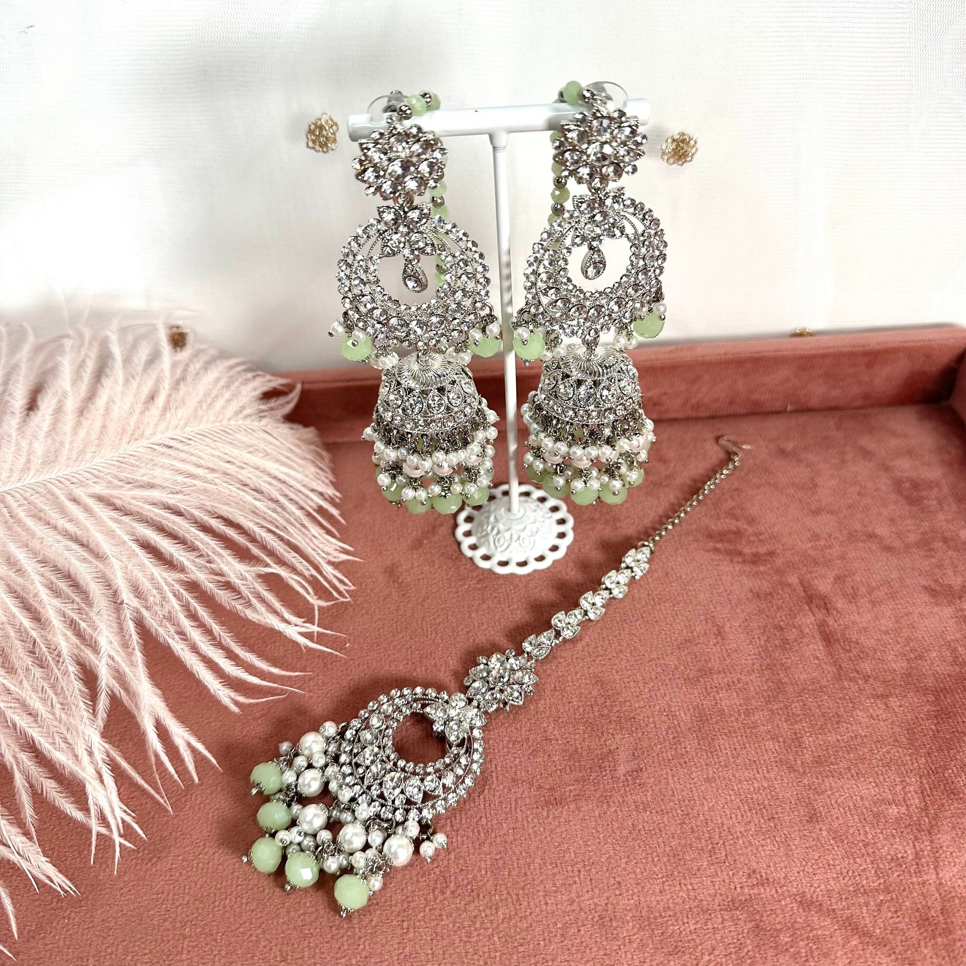 Silver Jhumka Earring and Tikka Set/ Jhumki Earring Indian/ Pakistani Style
