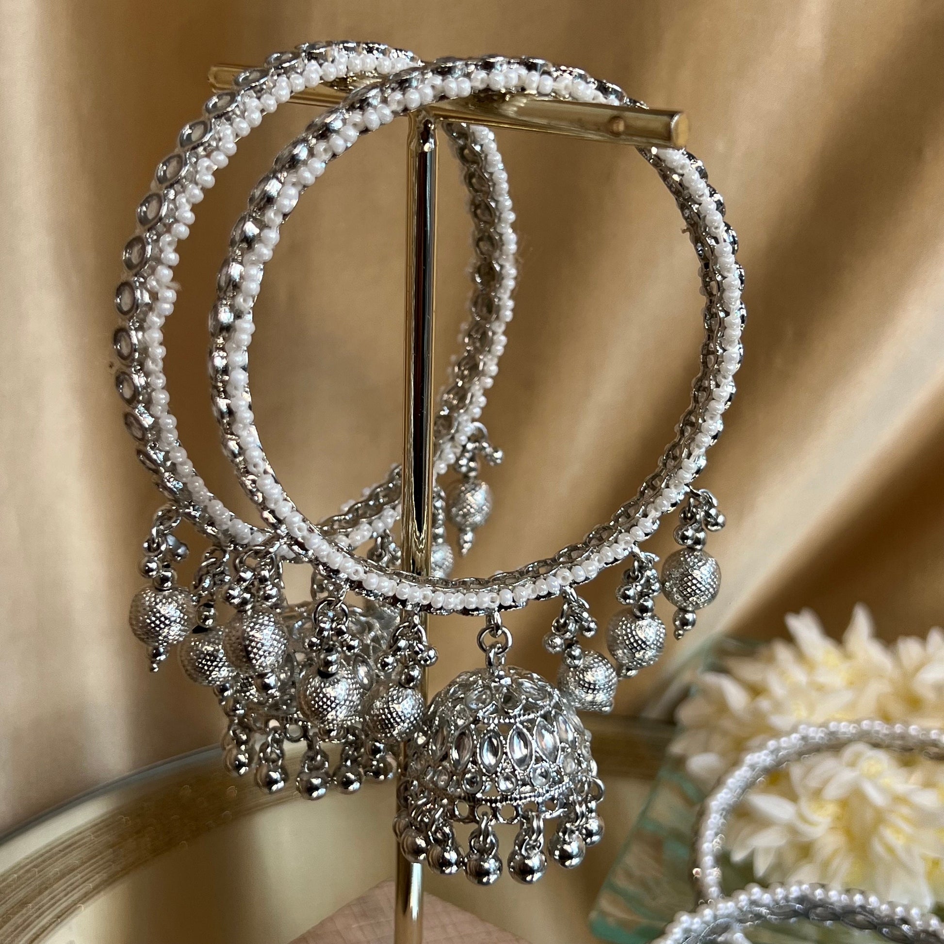 Silver Kundan Ball Jhumka Bangle Pair/Indian/ Pakistani/Jewelley/ Fashion Bracelet