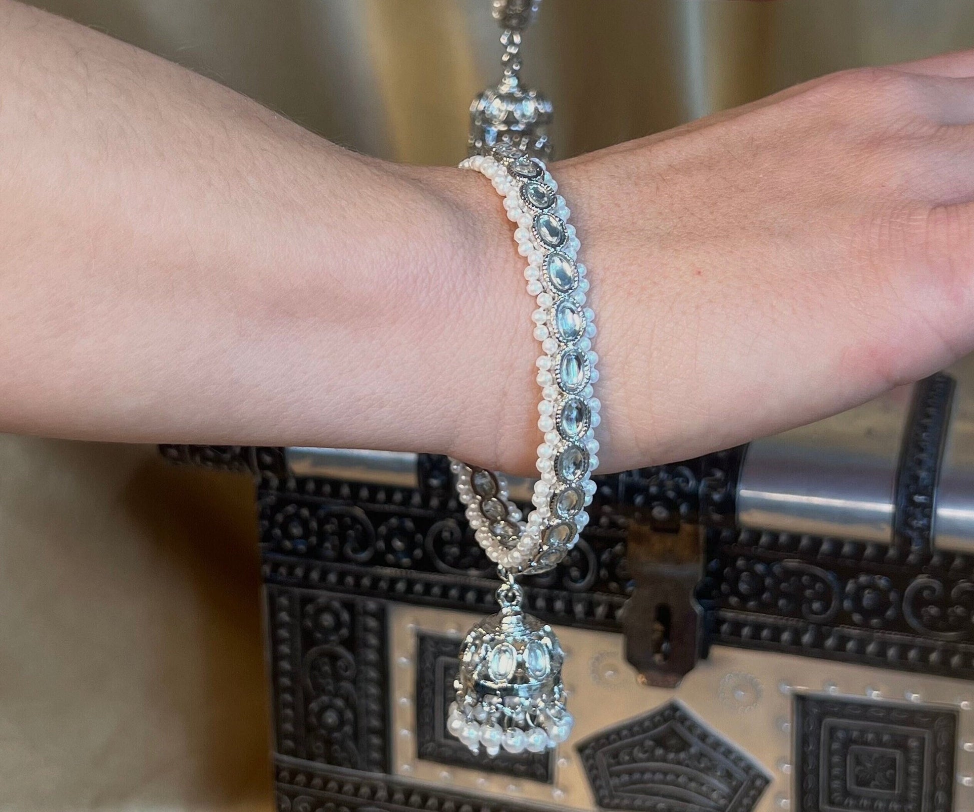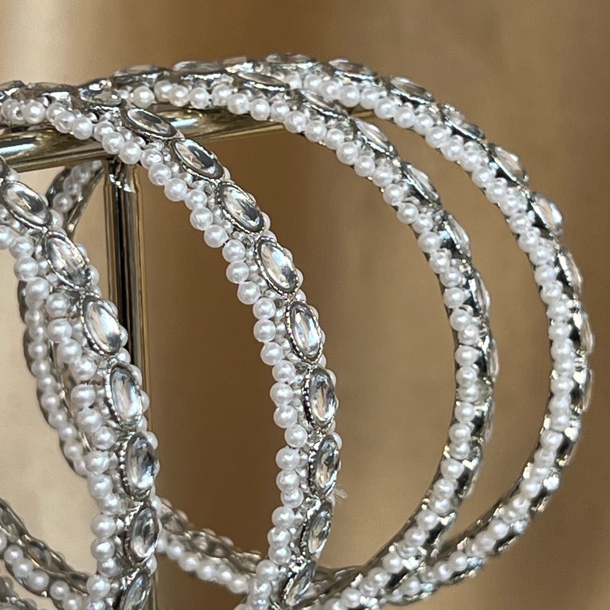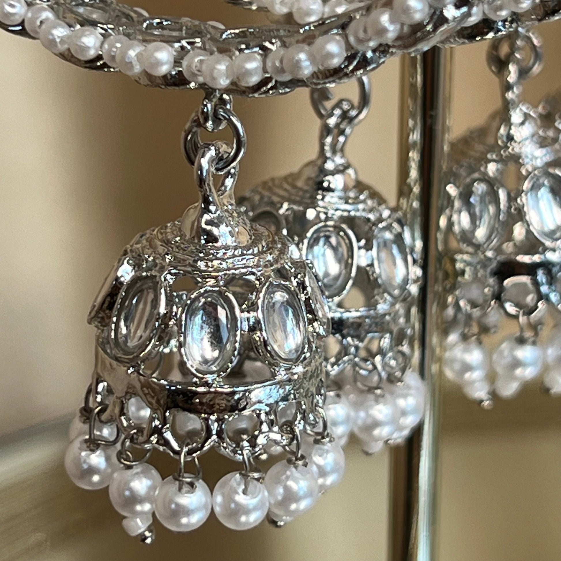 Silver Kundan Pearl Jhumka Bangle X 4/Indian/ Pakistani/Jewelley/ Fashion Bracelet