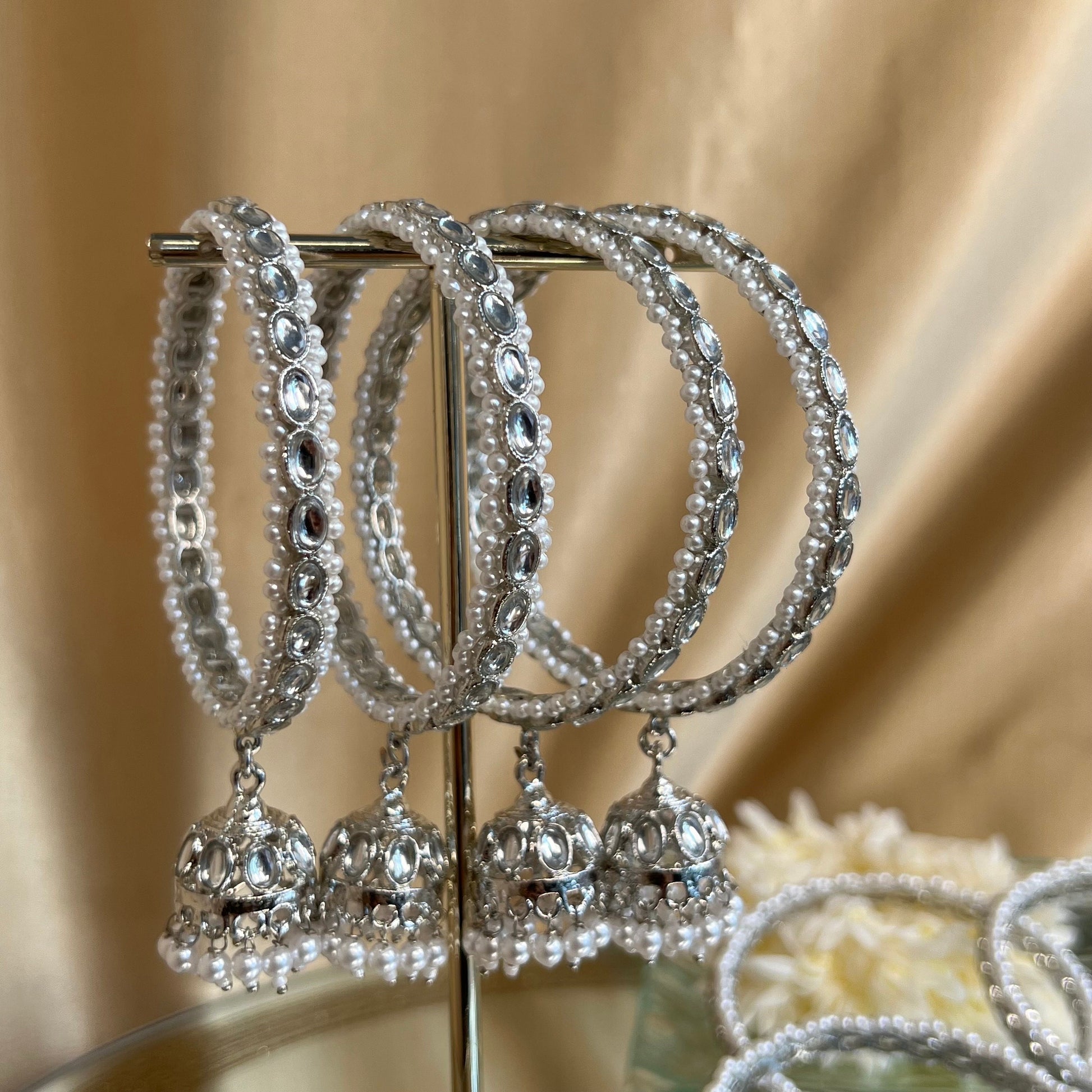Silver Kundan Pearl Jhumka Bangle X 4/Indian/ Pakistani/Jewelley/ Fashion Bracelet
