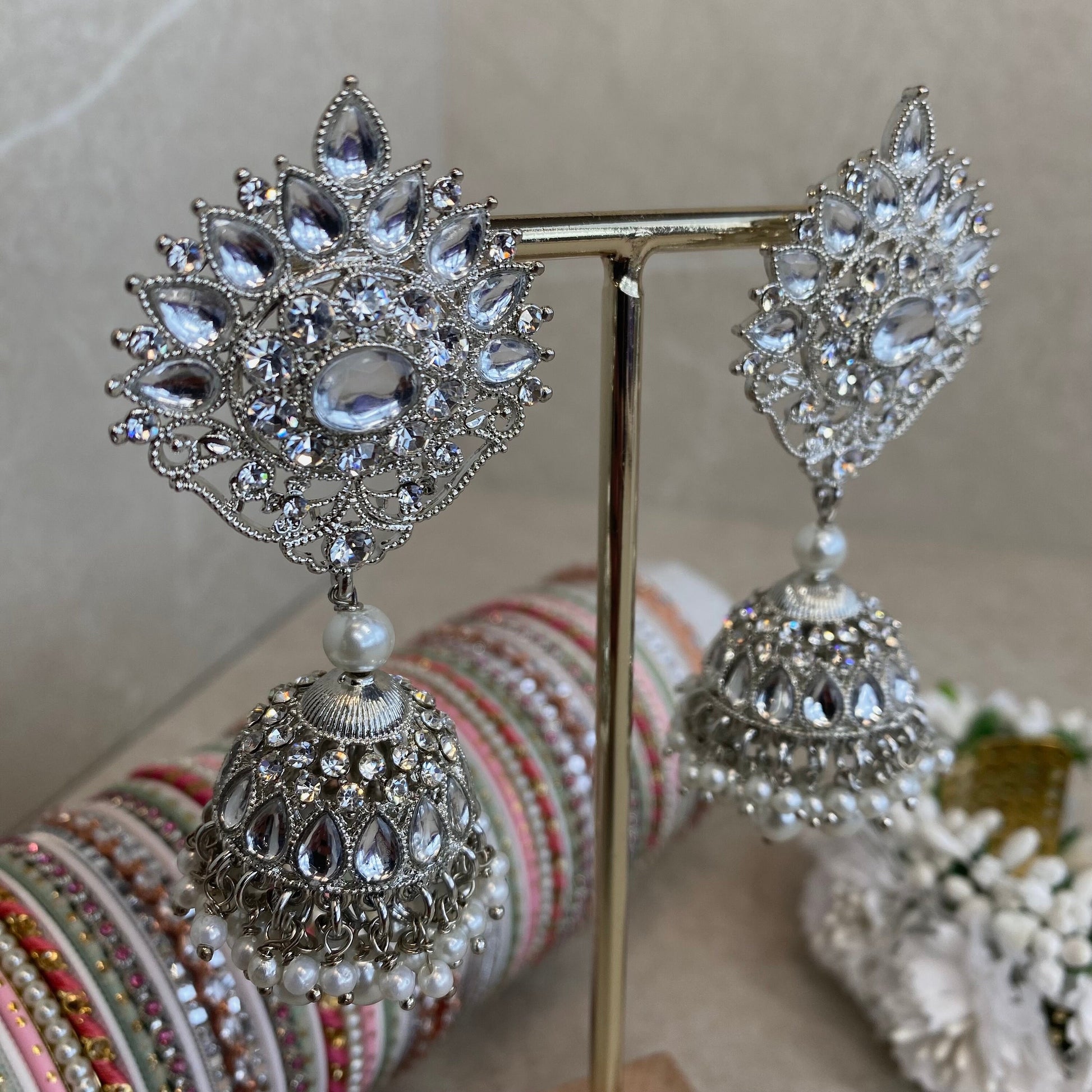 Pretty silver jhumka earrings is approximately 2.5 inch length x 1.5 inch wide