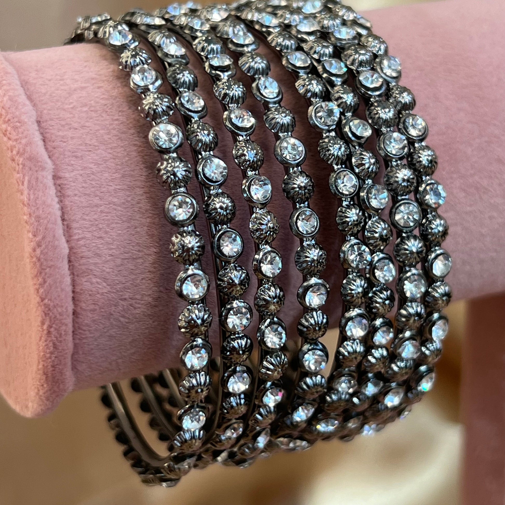 Silver Oxidised Crystal Bangle 2.2/Indian/ Pakistani/Jewelley/ Fashion Bracelet