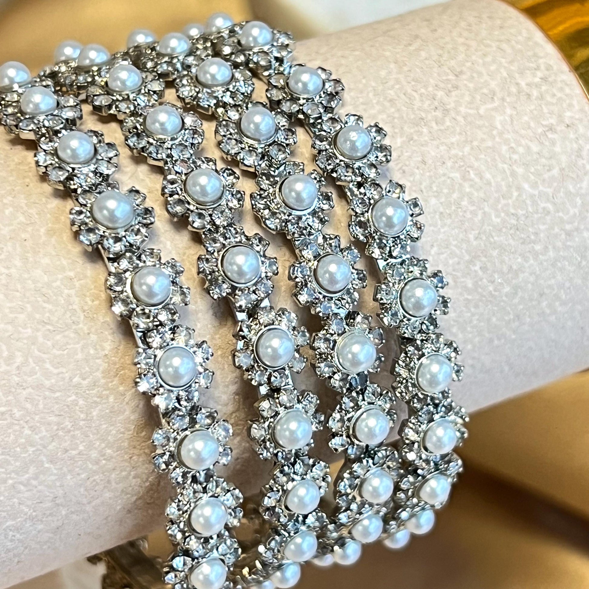 Silver Oxidised Daisy Pearl Bangles set of 4 High Quality Gift for her Indian Pakistani Bracelet Rhinestone