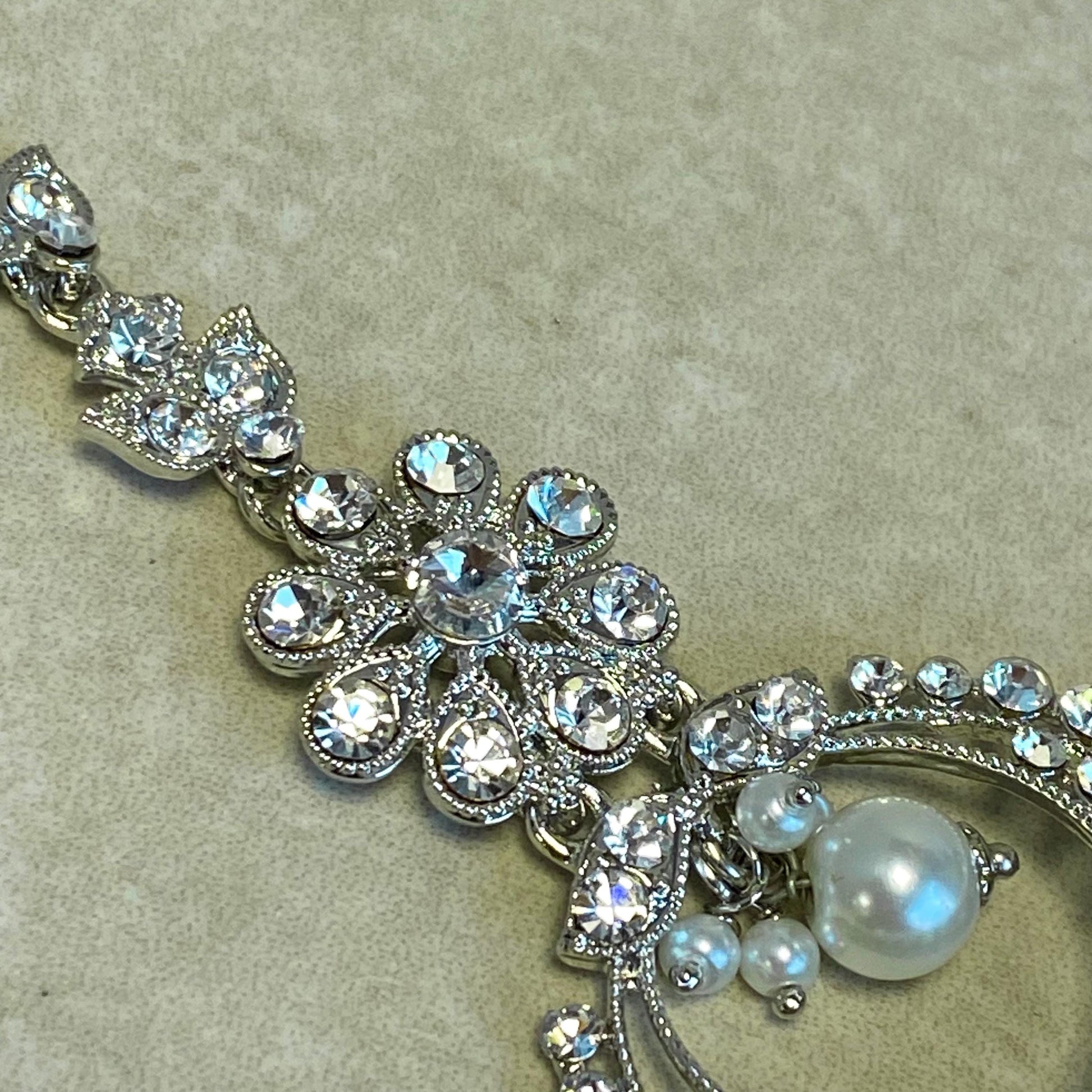Silver pearl Rhinestone Maang Tikka Bindya Indian Pakistani Bollywood Headpiece Mendhi Jewels Gift Fashion