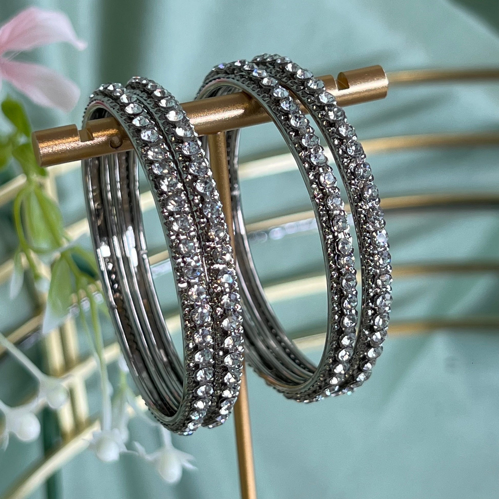 Silver Rhinestone bangle Set of 4/Indian/ Pakistani/Jewelley/ Fashion Bracelet/ Extra Small
