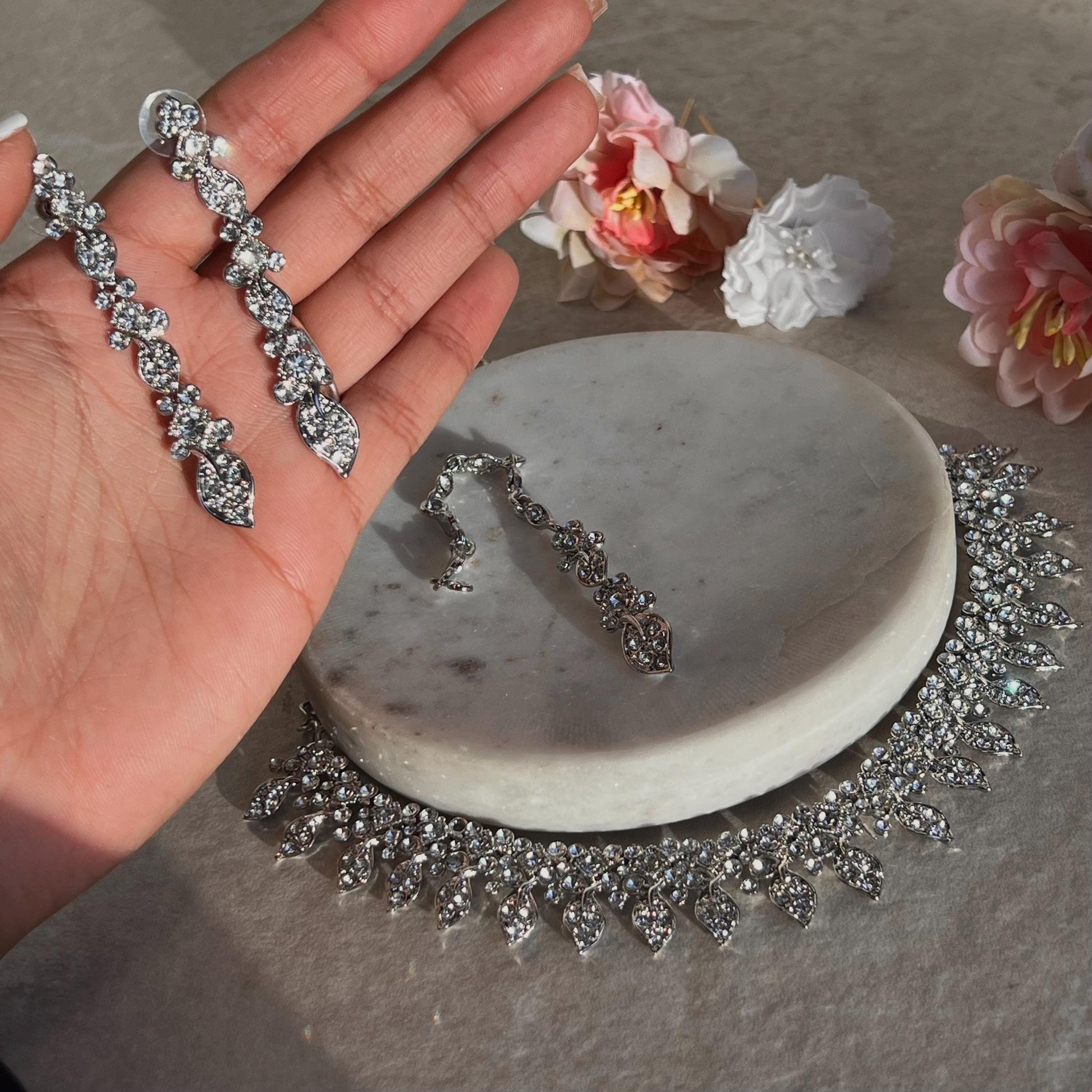 Silver Set/ Elegant Necklace Set Earring/ Tikka/ Indian/ Pakistani/Fashion Jewellery/ Gift for her/Civil/Registry/wedding/Xmas/ Imperfect