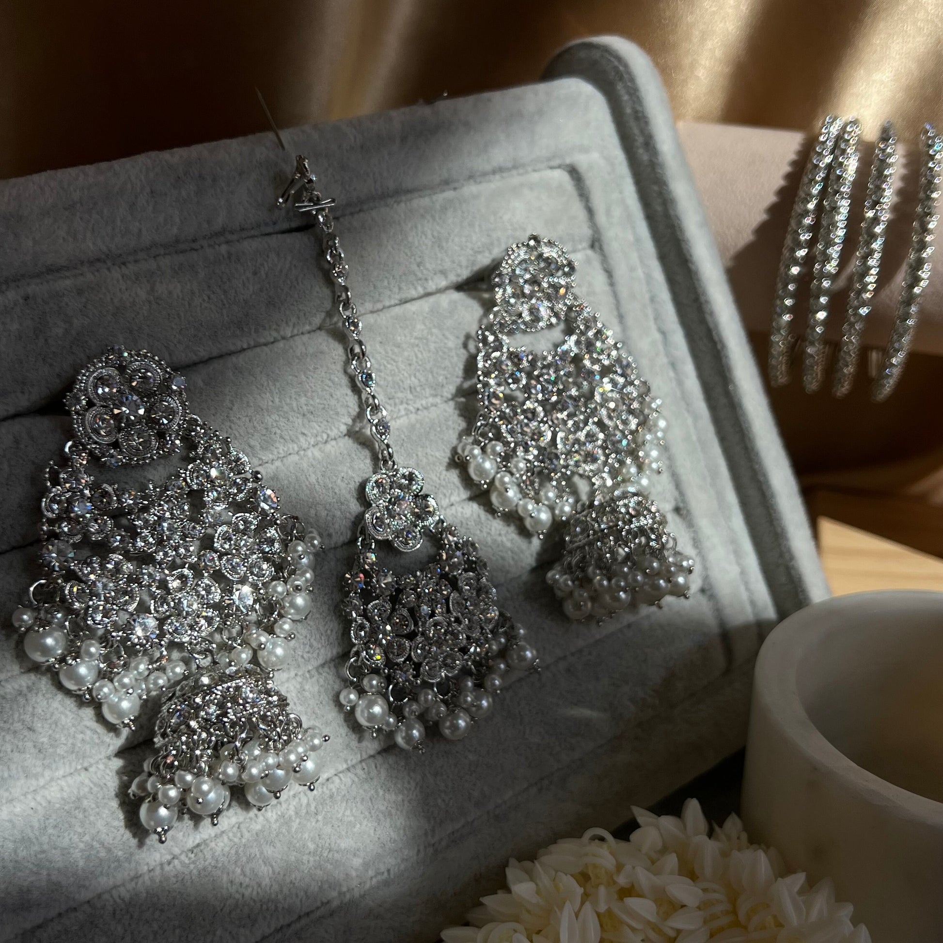 Silver Tikka and Earring Flat Earring Indian/ Pakistani Style/ Jhumki